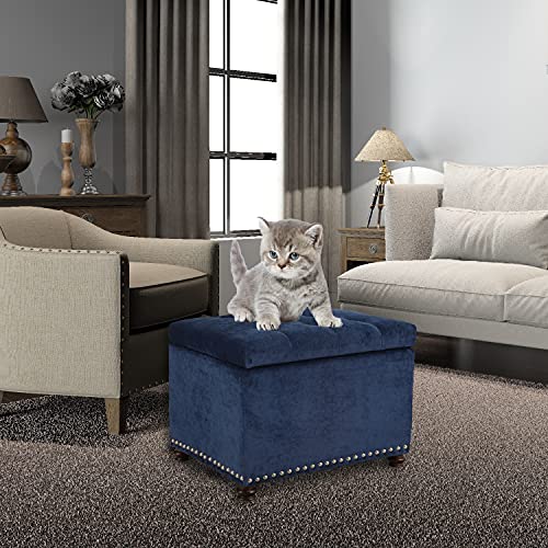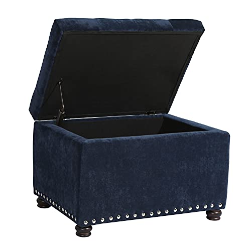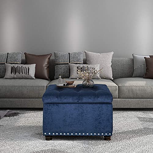 Lake Blue 24" Rectangle Tufted Lift Top Storage Ottoman Bench, Linen Fabric Footrest with Foam Padded Seat