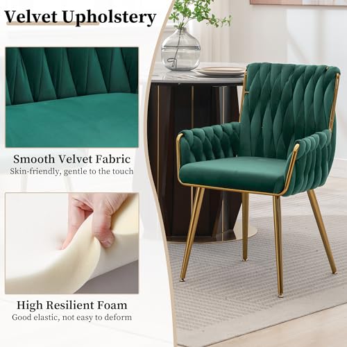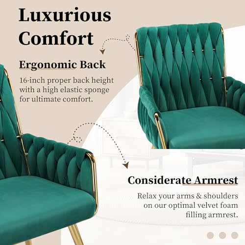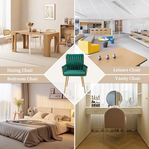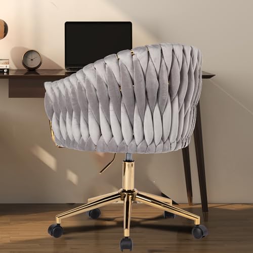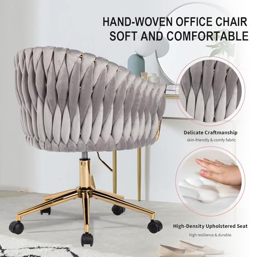 Desk Chair, Comfy Velvet Swivel Armchair with Wheels, Modern Velvet Gold Accent Rolling Chair, Upholstered Hand Woven Makeup Vanity Chair Height Adjustable for Women Girls Home Office, Beige