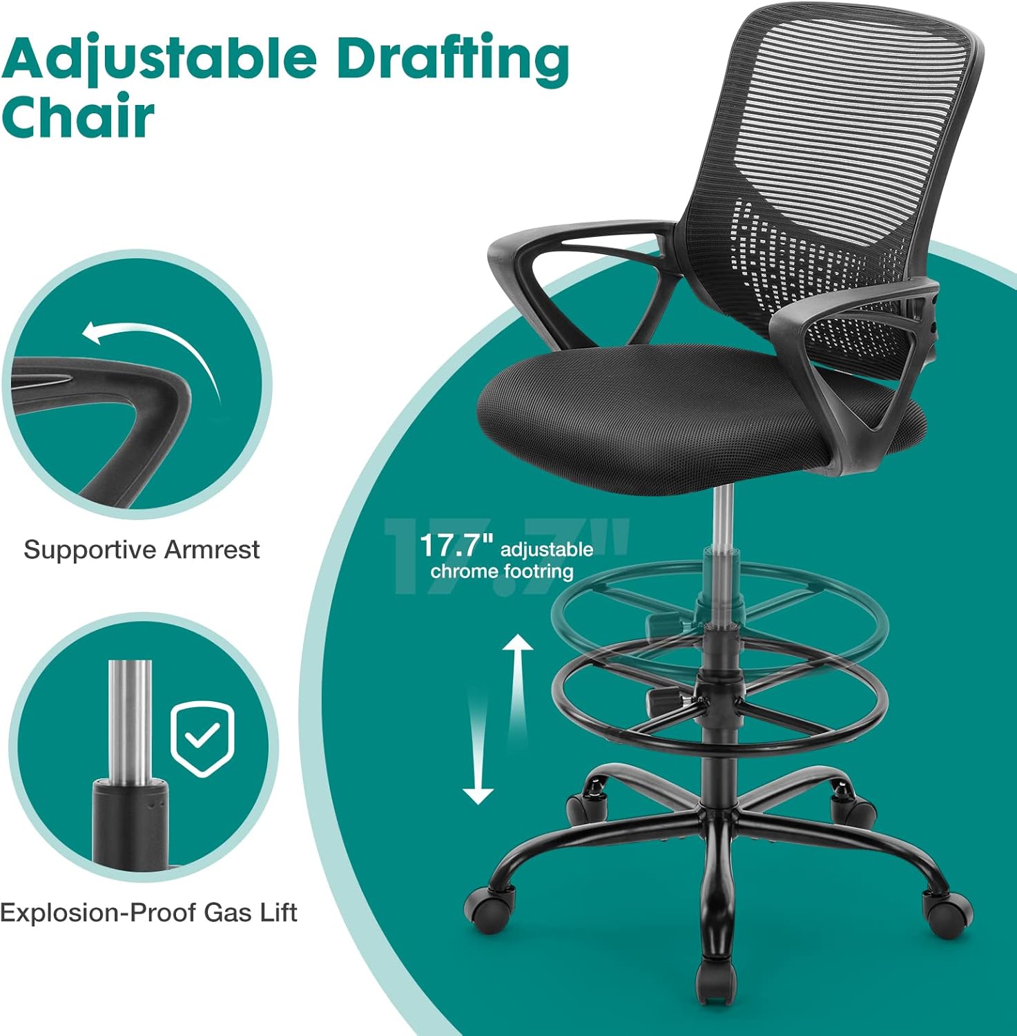 Standing Desk Counter Height Office Chair with Adjustable Foot Ring, Charcoal Black