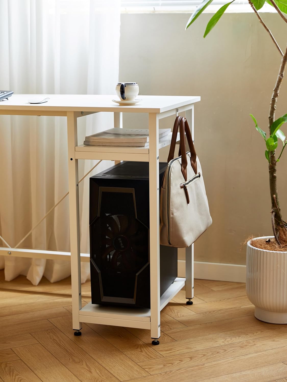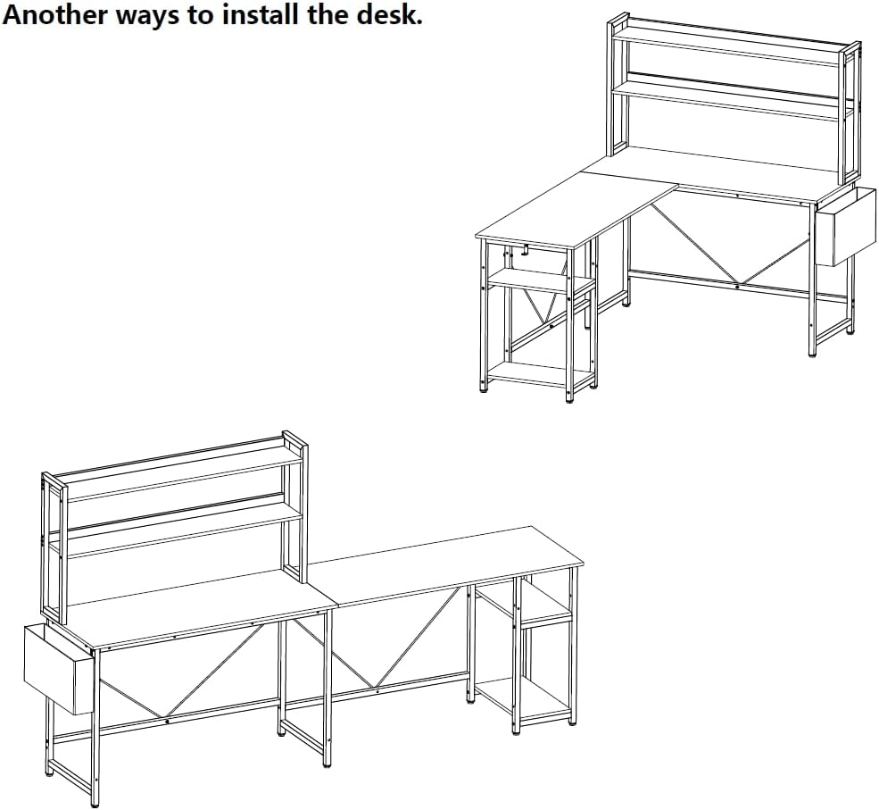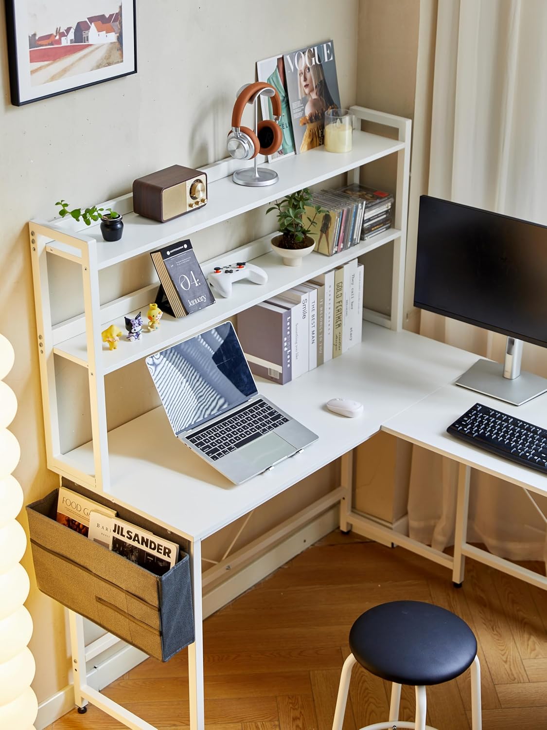 67 Inch L Shape Gaming Desk with Hutch, Computer Desk with Storage Shelves and Stool, Corner Desk for Home Office, Modern 2 Person Writing Desk, White