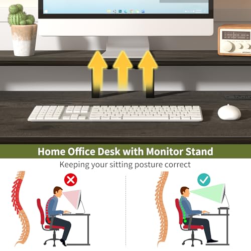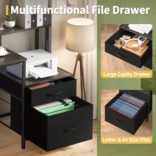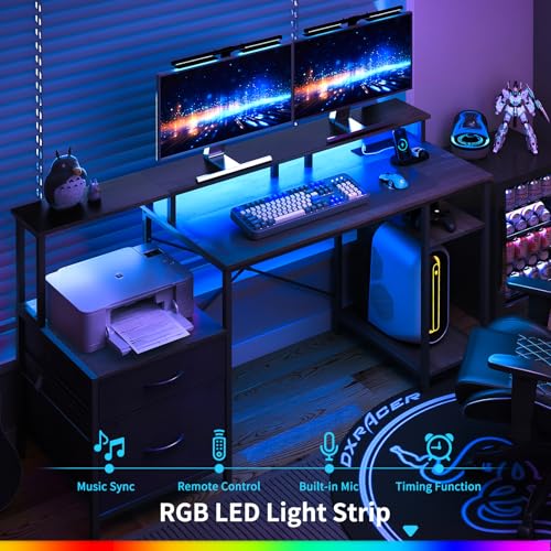 Yoobure Computer Desk, Gaming Desk with LED Lights & Outlets, 59" Office Desk with Drawers Long Home Office Desks with Fabric File Cabinets, Work Desk with Storage Shelves & Monitor Stand for Bedroom