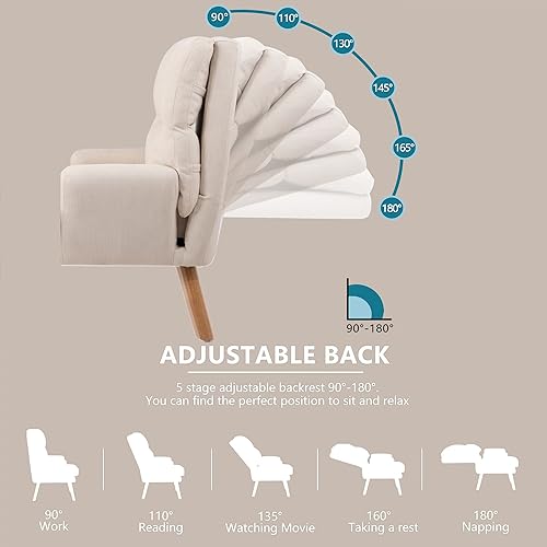 Accent Chair with Ottoman Set,Fabric Armchair with Wood Legs and Adjustable High Backrest,Upholstered Lounge Chair for Living Room,Bedroom,Reading Room and Study (Beige)
