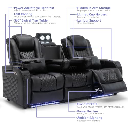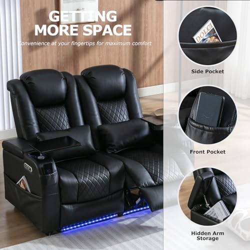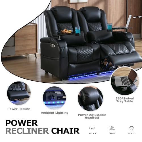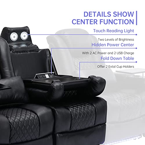 Power Recliner Sofa Set with 7 Colors Ambient Lights,Recliner Couches for Living Room Reclining Sofa with Type-C & USB Charge, Air Leather Recliner Sofa LED Couch Living Room Furniture Set (1+2+3)