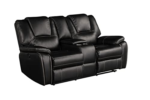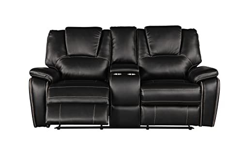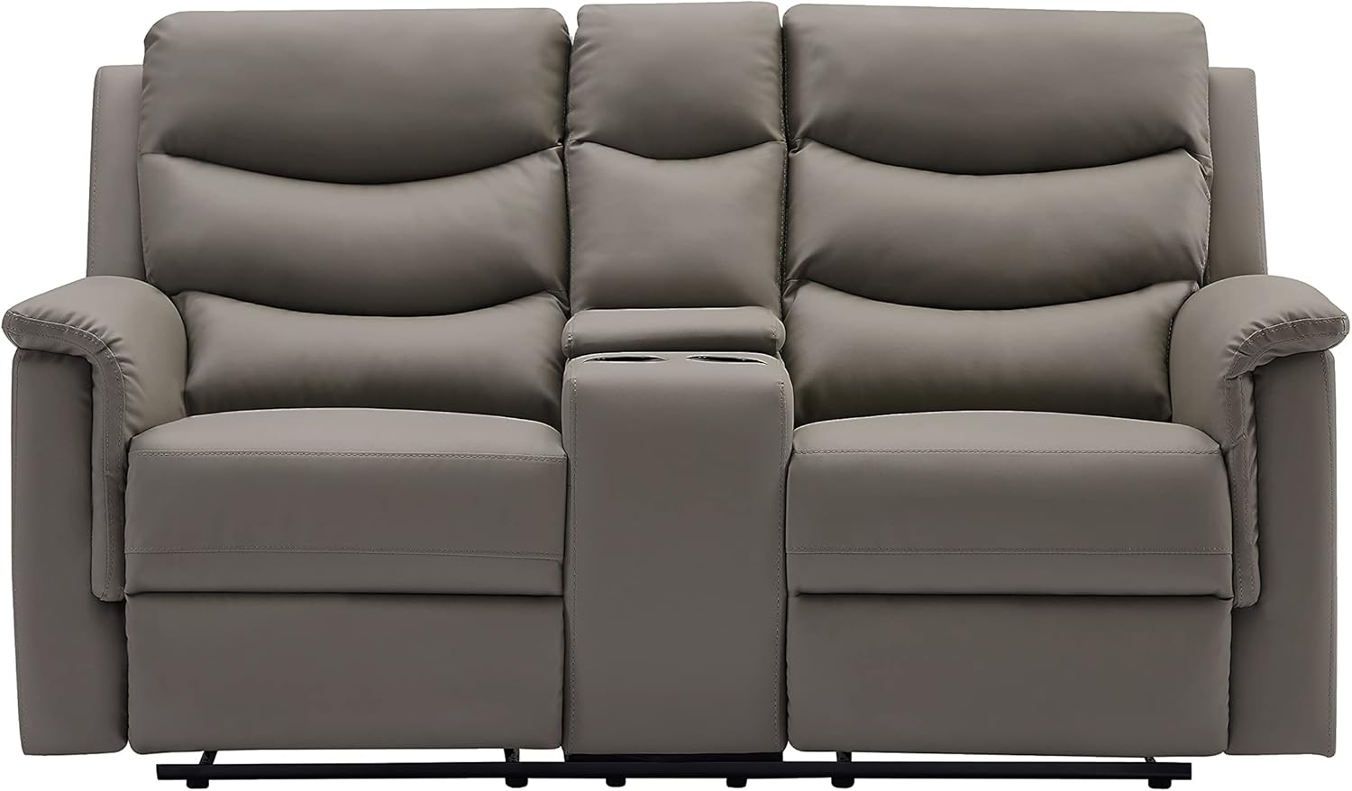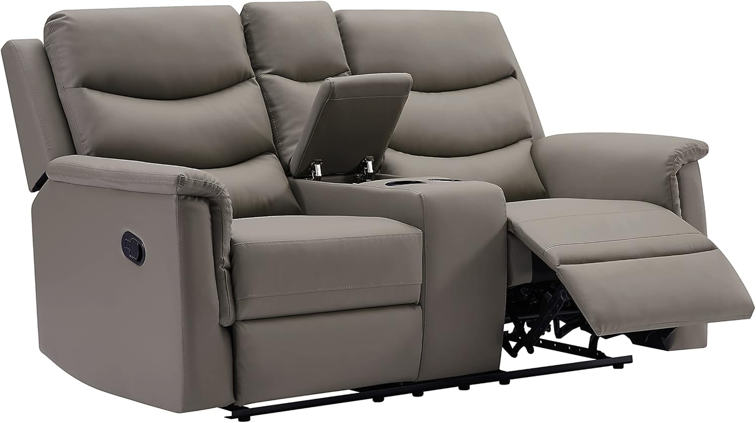 Faxu Leather Love, Manual Double Reclining Loveseat Sofa, Home Theater Seating with Storage Console, Wall Hug RV Couch with Cup Holders for Living Room Furniture Sets, Grey