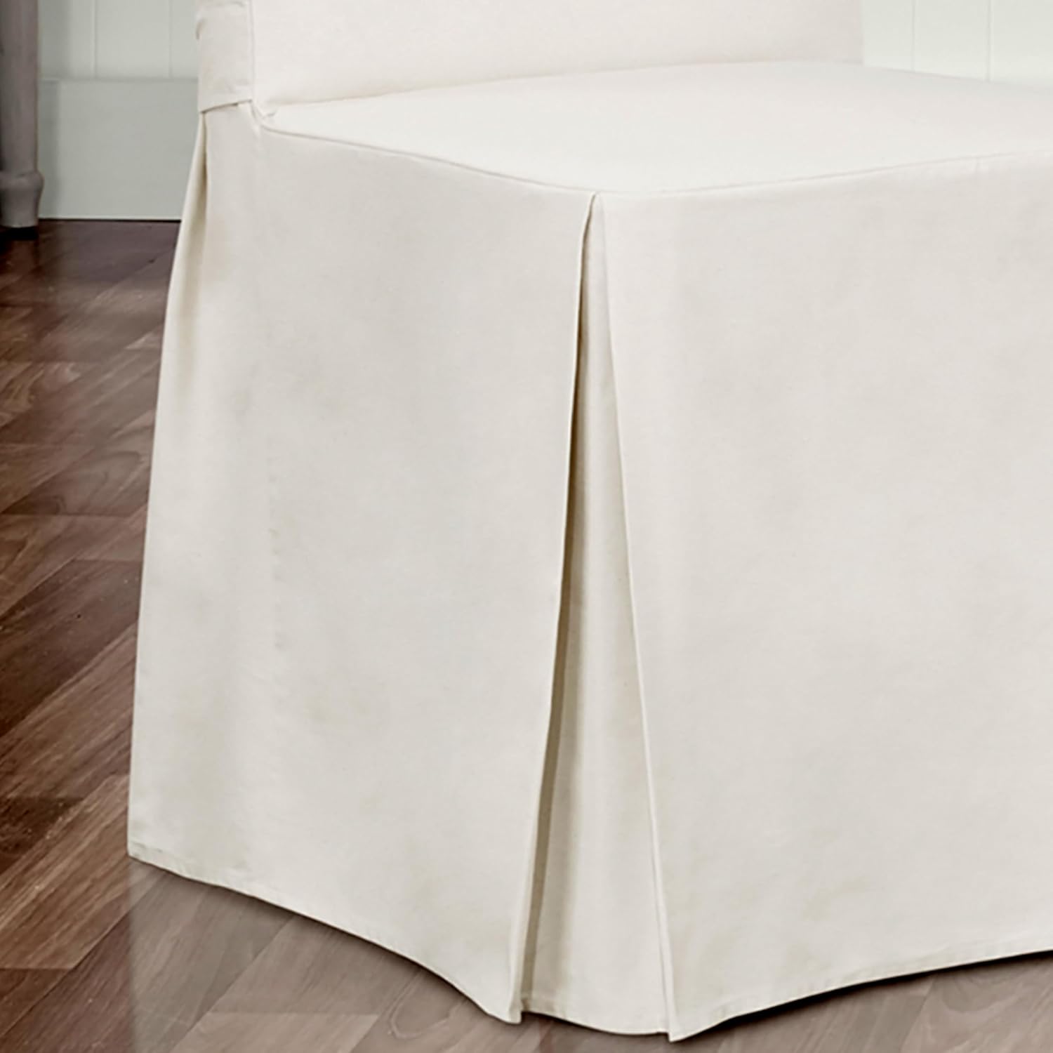 Twill Long Dining Chair Slipcover White Solid Cotton