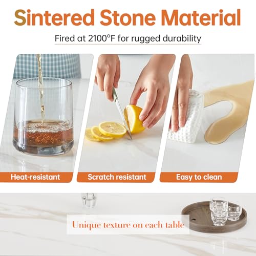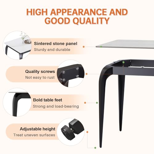 Dining Table, Grey Rectangular 55" Kitchen Table with Sintered Stone Marble Table Top and Metal Legs, Mid Century Dinner Table for Dining Room, Kitchen and Office.