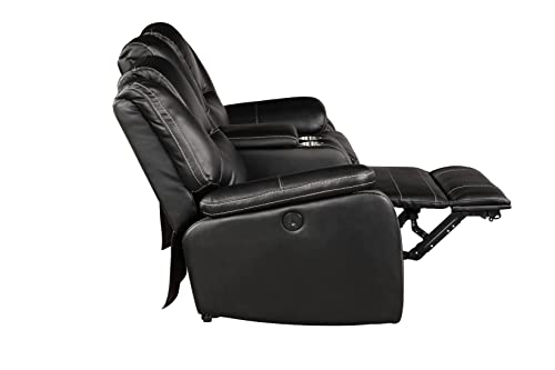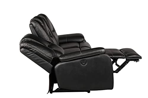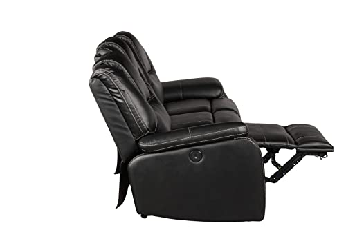 3 Pieces Power Reclining Sofa Set with Armchair, Loveseat and 3-Seat Sofa, Faux Leather Upholstered Couch Set with 2 Cup Holders and Headrest for Living Room, Black