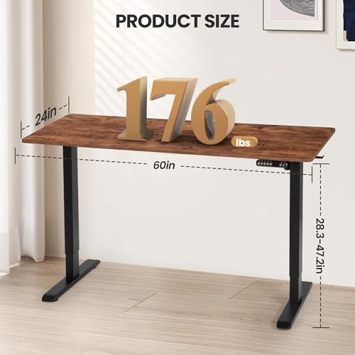 60 x 24 Inches Electric Standing Desk, Adjustable Height Stand Up Desk, Home Standing Workstation Computer Office Desk with 4 Memory Preset Controller, Rustic Brown