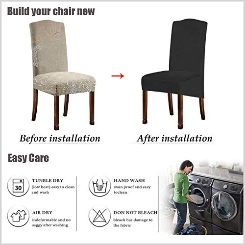 Velvet Plush XL Dining Chair Covers, Stretch Chaircover, Spandex High Chairs Protector Covers Seat Slipcover with Elastic Band for Dining Room,Wedding, Ceremony, Banquet (Teal Green, Set of 4)
