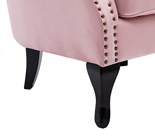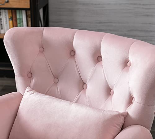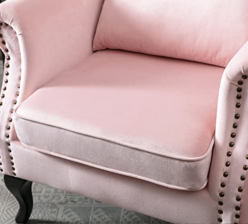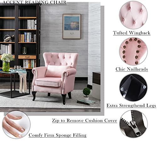 Mid Century Modern Accent Chair Upholstered Armchair Comfy Velvet Fabric Single Sofa with Tufted Wingback for Small Spaces Bedroom Living Room, Hot Pink