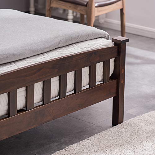 Wood Bed Frame Full Size with Headborad and Footboard Double Platform Bed with Wood Slat Brown Panel Bed with Extra Support, No Box Spring Needed,Walnut