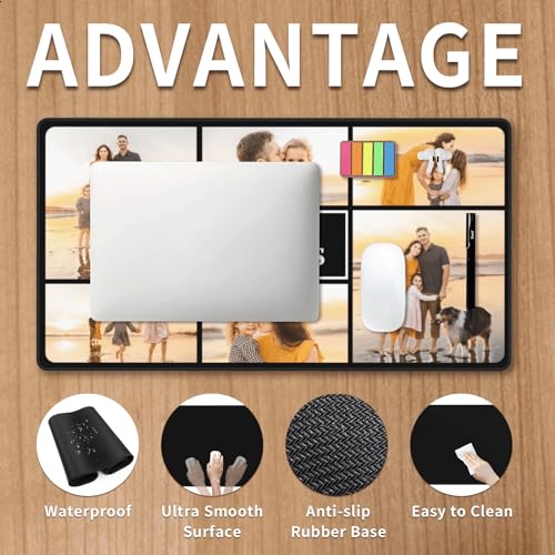 Large Custom Mouse Pads with 6 Photo and Text, Big Mouse Pad Custom, Custom Playmat Gift for Men Boyfriend Husband Dad on Birthday Anniversary Christmas