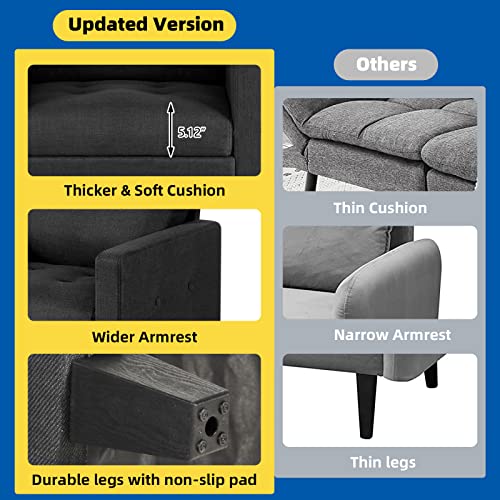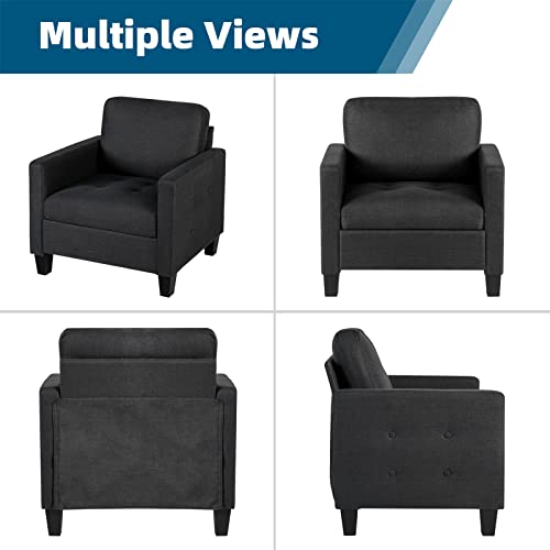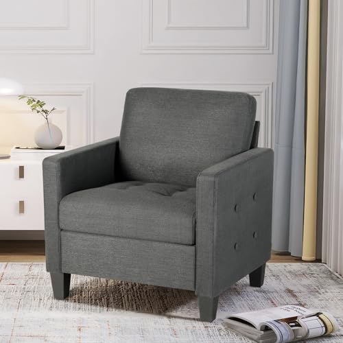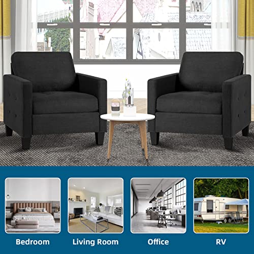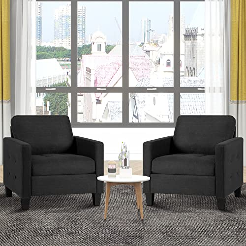 GRAVFORCE Mid Century Accent Chair Set of 2, Fabric Armchair for Living Room, Upholstered Reading Chair, Modern Button Tufted Single Sofa with Lounge Seat for Bedroom, Office (Dark Grey)