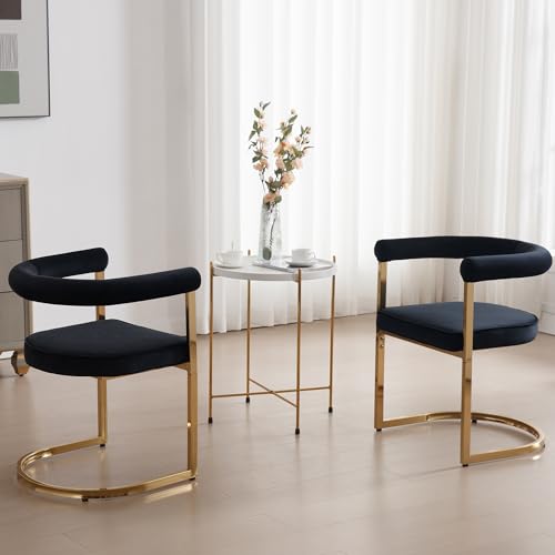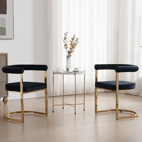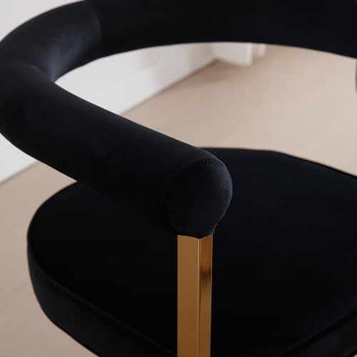 Wahson Modern Armrest Barrel Dining Chairs Set of 4, Velvet Upholstered Open-Back Dining Chairs with Golden Legs, for Dining Room/Kitchen, Black