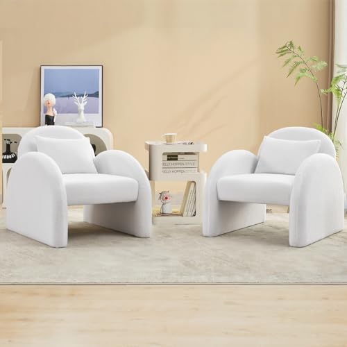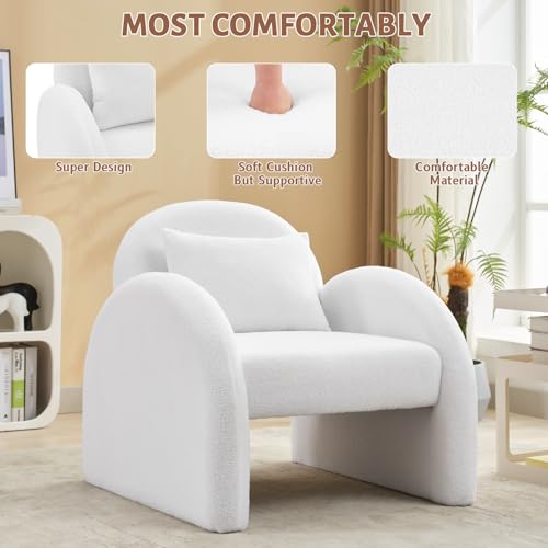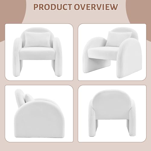Sherpa Accent Chair,Teddy Upholstered Arm Single Sofa,Modern Fluffy Reading Chair for Living Room, Bedrooms, Corner,Mid Century Accent Armchair Velvet White Accent Chair for Office Study