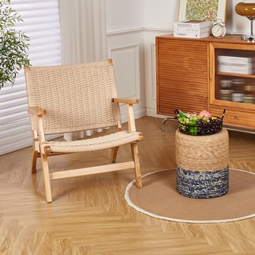 Mxfurhawa Round Ottoman, Natural Hand Braided Pouffe, Footstool with Solid Wood Frame, Rustic Accent Sitting, Farmhouse Pouf, Boho Decor or Small Table for Living Room (Cattail + Black Corn Husk)