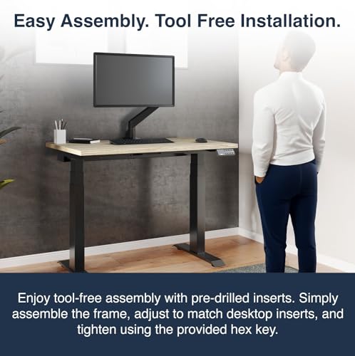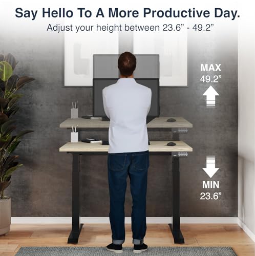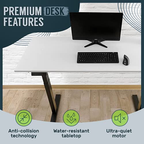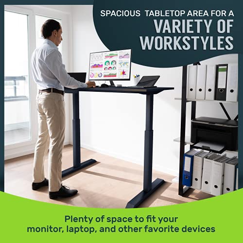 TechOrbits Electric Standing Desk Frame 60 x 24 Inch Tabletop - Motorized Workstation Two Leg Stand Up Desk with Memory Settings and Telescopic Sit Stand Height Adjustment (Black Frame/Black Top)