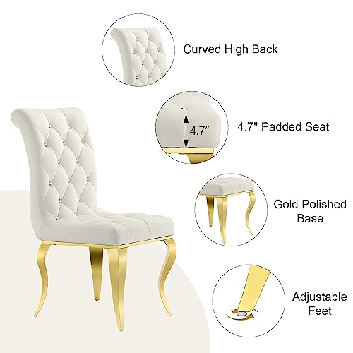 Dining Chairs, Black Velvet Upholstered Dining Room Chairs Set of 6, Crystal Decor Button Tufted Dining Chairs with Gold Mirror Cabriole Legs