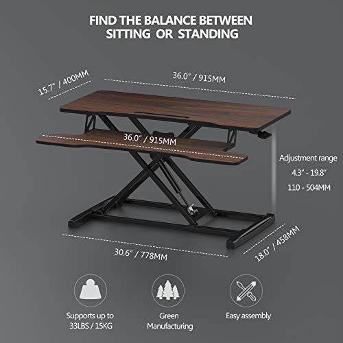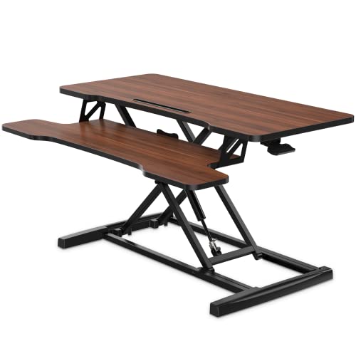 FITUEYES Height Adjustable Standing Desk 36” Wide Sit to Stand Converter Stand Up Desk Tabletop Workstation for Dual Monitor Riser FSD309101WB