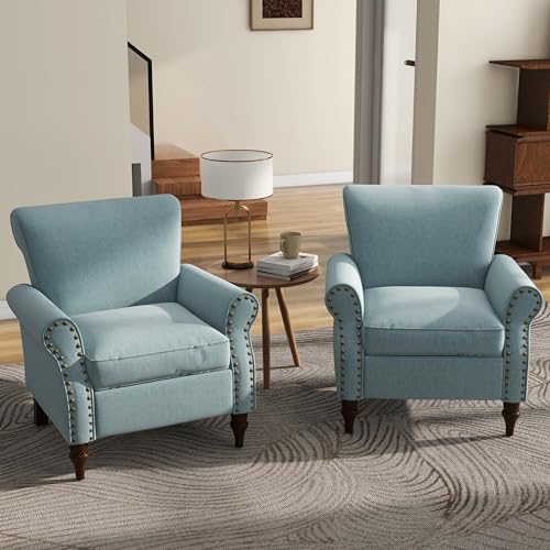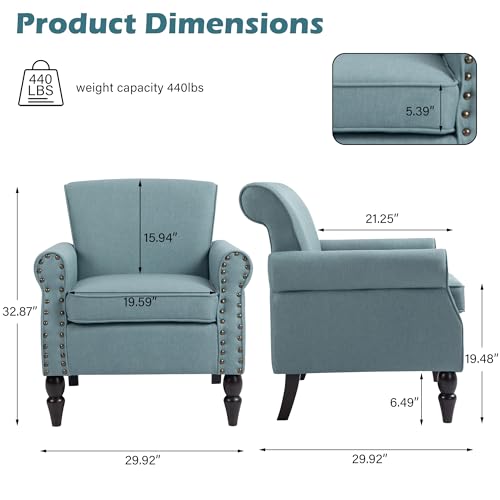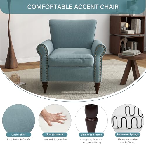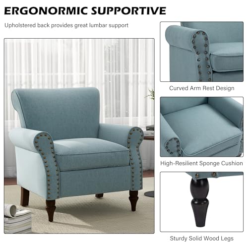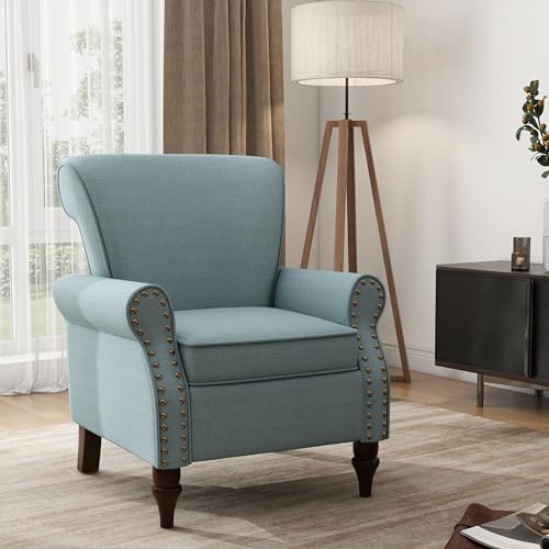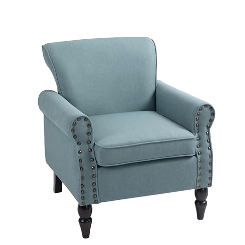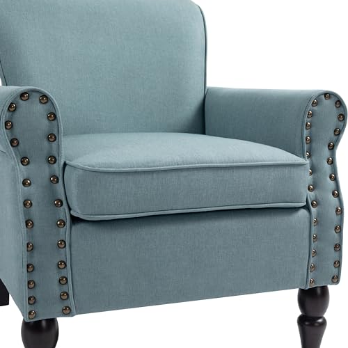 UIXE PU Leather Accent Chair, Modern Arm Club Chairs Nailed Trim Living Room Upholstered Armchair, Comfy Single Sofa Lounge Reading Seat Bedroom Side Seating for Home Office, Brown