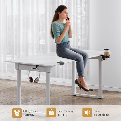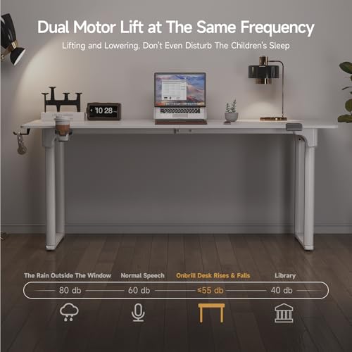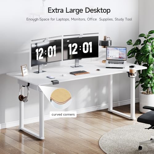 Stand Up Desk with 4 Legs, 71x32 Rectangle Desk with Memory Controller & Dual Motors, Standing Desk Height Adjustable from 28" to 46" for Home Office Desk & Computer Workstations, White