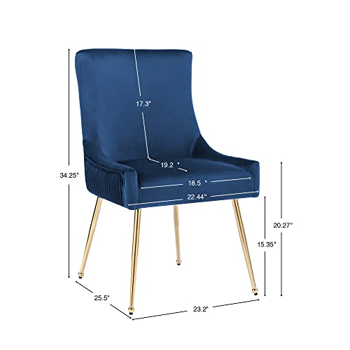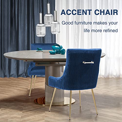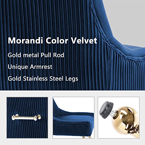 Modern Leisure Velvet Dining Chairs Set of 4, Upholstered Velvet Chair with Gold Metal Legs, Mid-Century Accent Chair with Pleated Back, Black