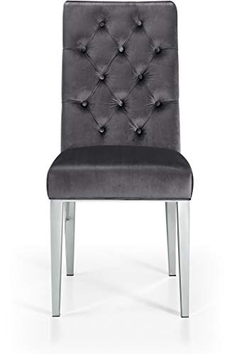 Meridian Furniture Juno Collection Modern | Contemporary Velvet Dining Chair with Luxurious Deep Tufting and Polished Chrome Metal Legs, Set of 2, 19" W x 25" D x 36.5" H, Black