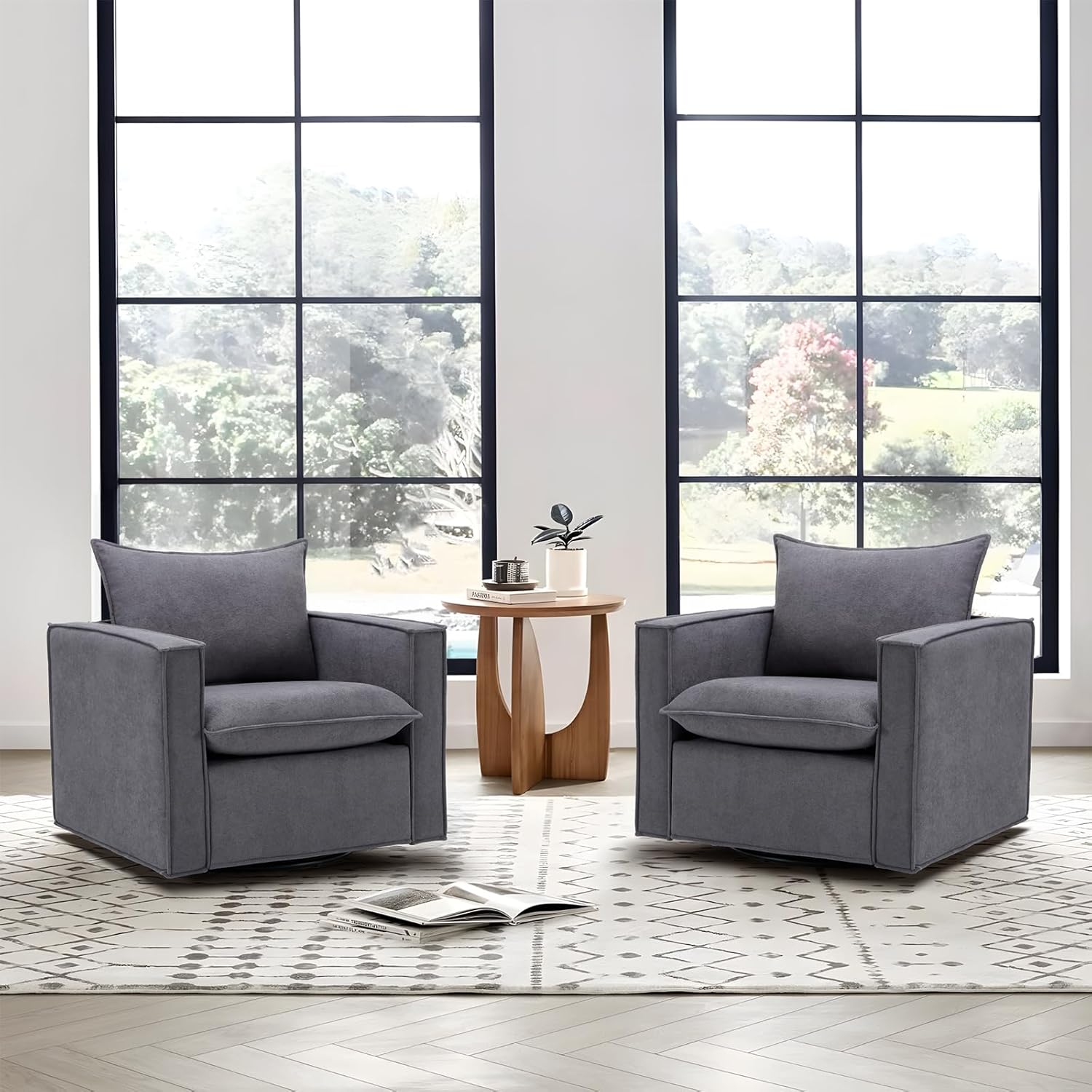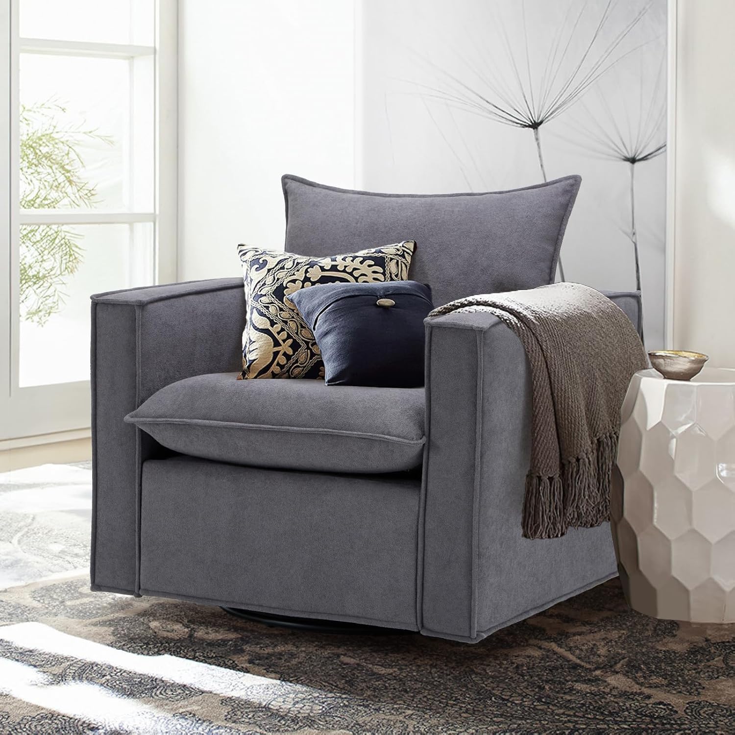 Swivel Accent Chair, 34 Inches Wide Upholstered Arm Chair with Plump Back Pillow, Modern Sofa Living Room Chair for Bedroom, Corner, Reading Nook-Grey