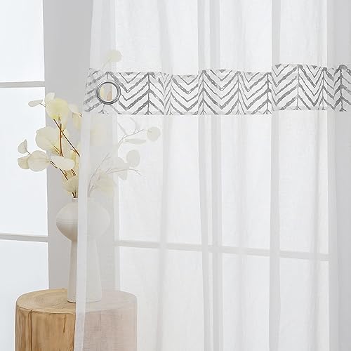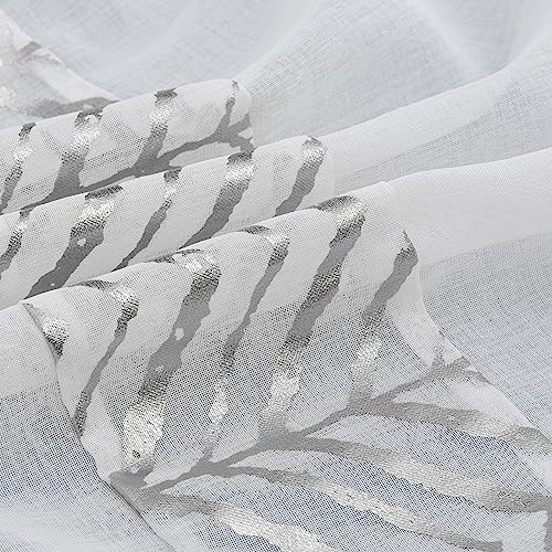 Sheer Curtains for Living Room 2 Panels Set 108 Inch Curtains with Tiebacks Grommet Top Gold Foil Printed Linen Look Window Extra Lone Curtain (56" W x 108" L Gold)