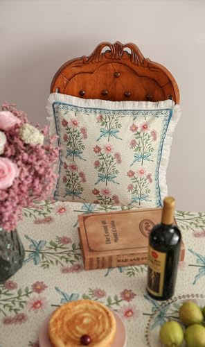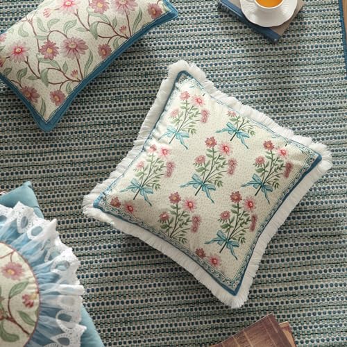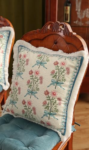 Designer French Country Velvet Throw Pillow Cover 18x18 inches,Elegant Blue Pink Small Floral Pattern,Decorative Square Pillowcases Cushion for Bed Living Room Outdoor Car