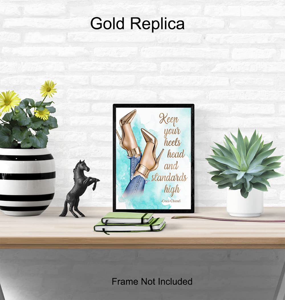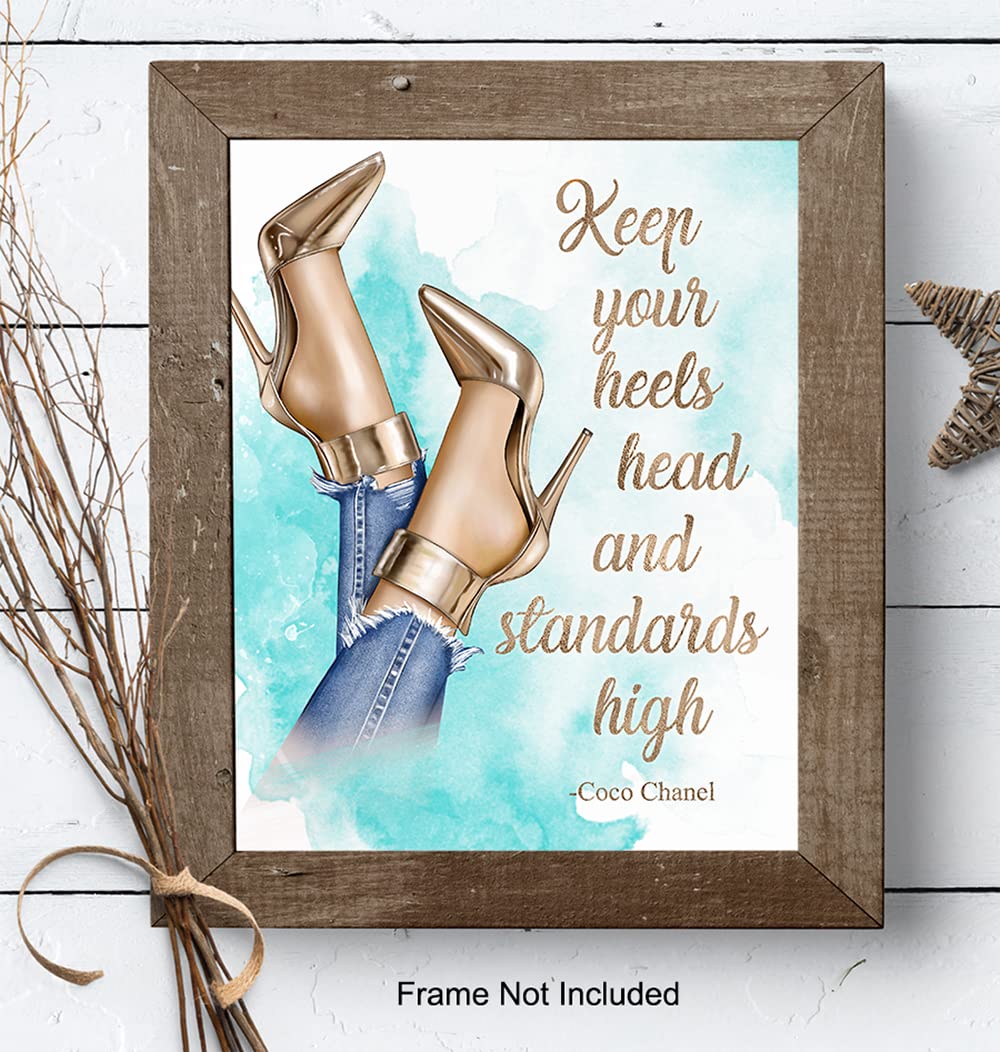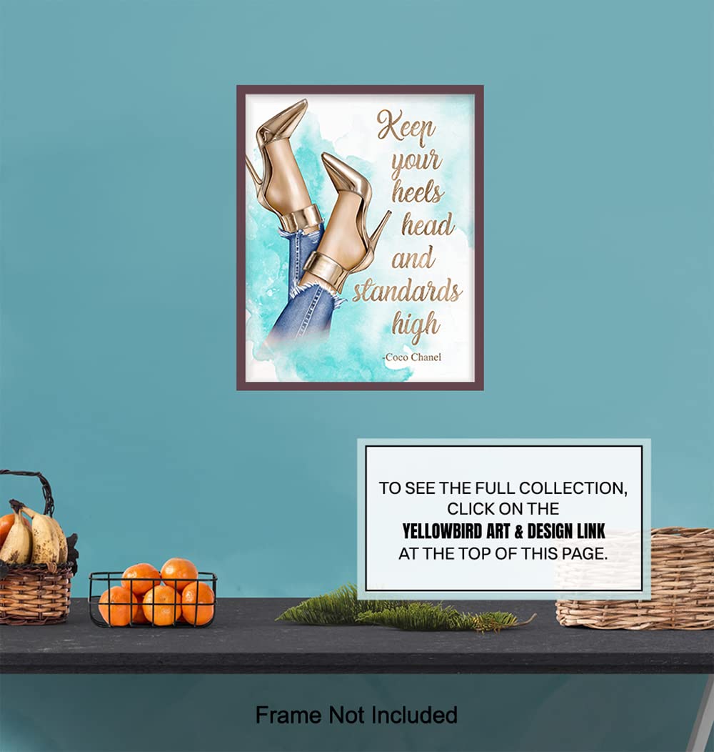Motivational Quote Wall Art - Glam Wall Decor - Inspirational Gift for Women, Designer Shoes Fan, Couture Fashionista - Luxury Home decoration for Bathroom, Living room, Girl Teens Bedroom
