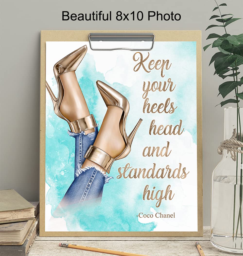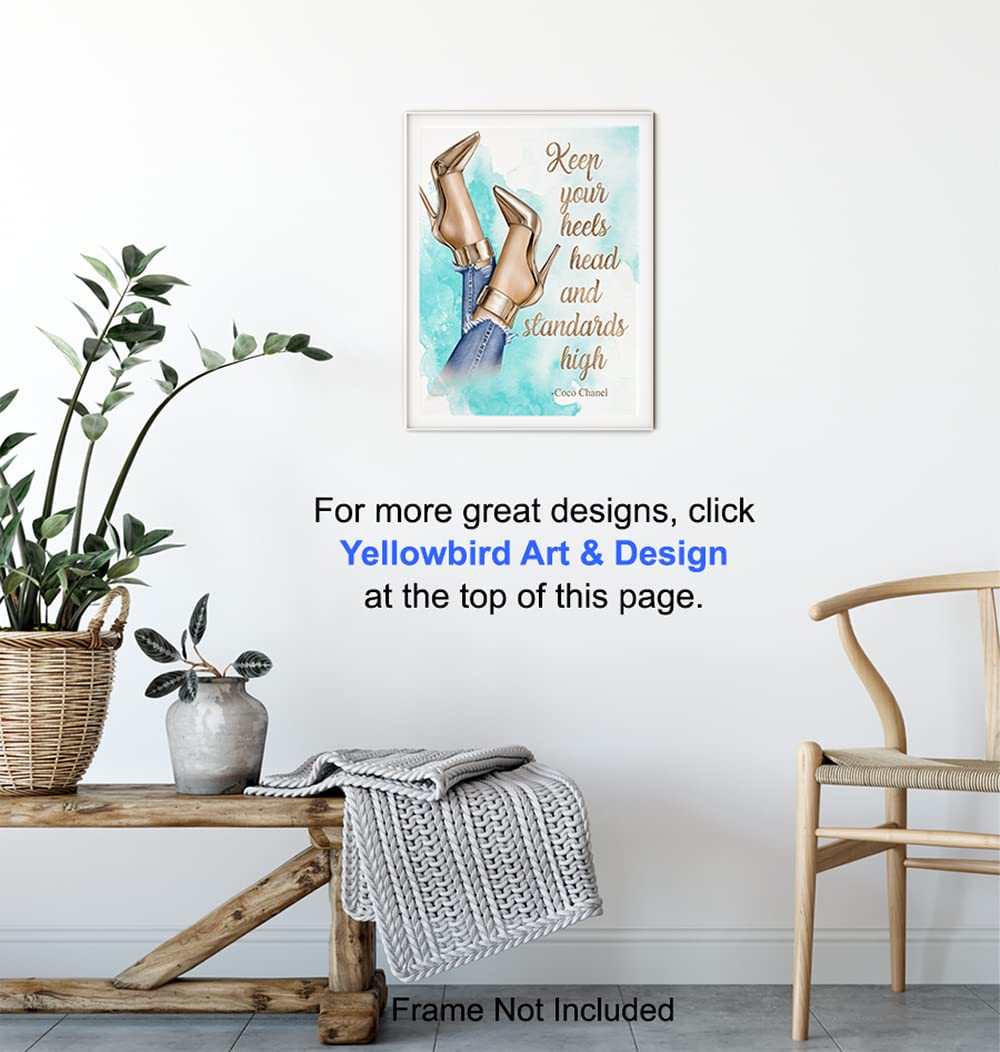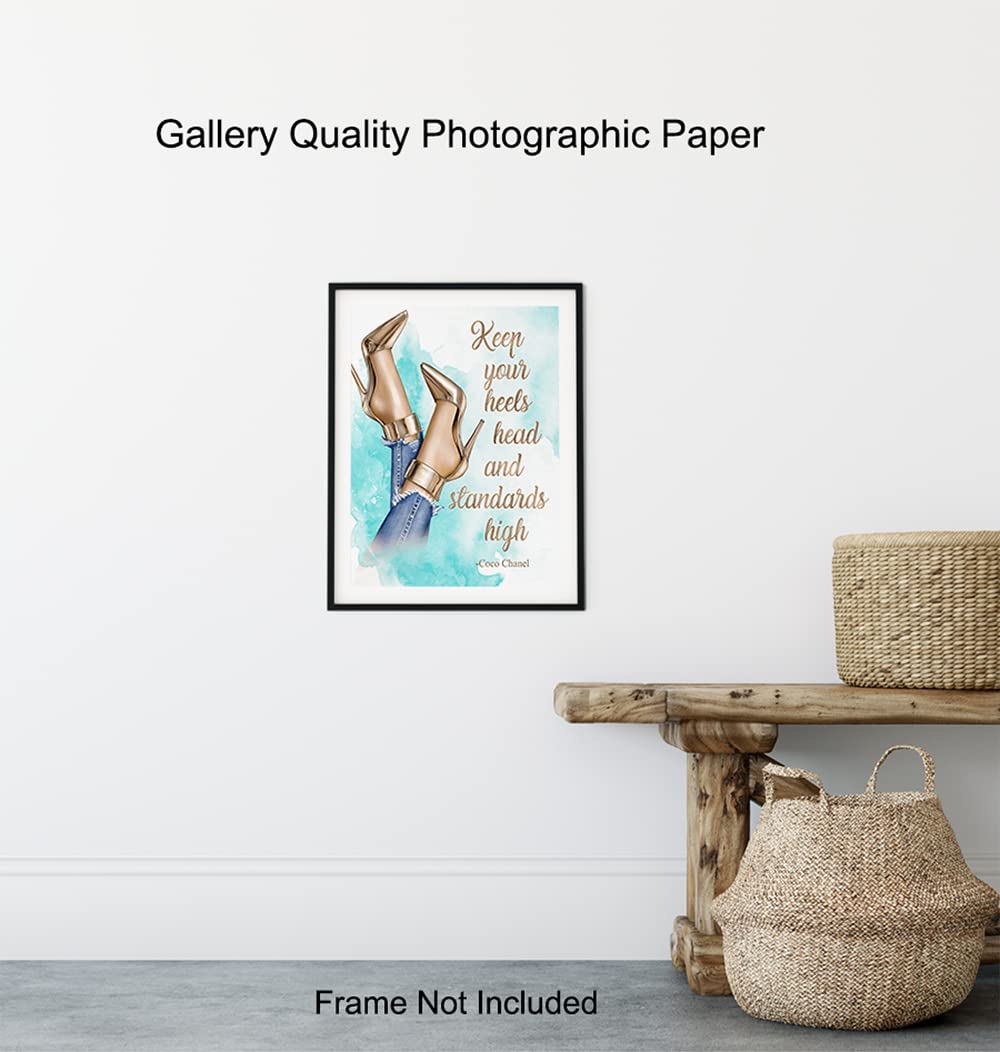Motivational Quote Wall Art - Glam Wall Decor - Inspirational Gift for Women, Designer Shoes Fan, Couture Fashionista - Luxury Home decoration for Bathroom, Living room, Girl Teens Bedroom