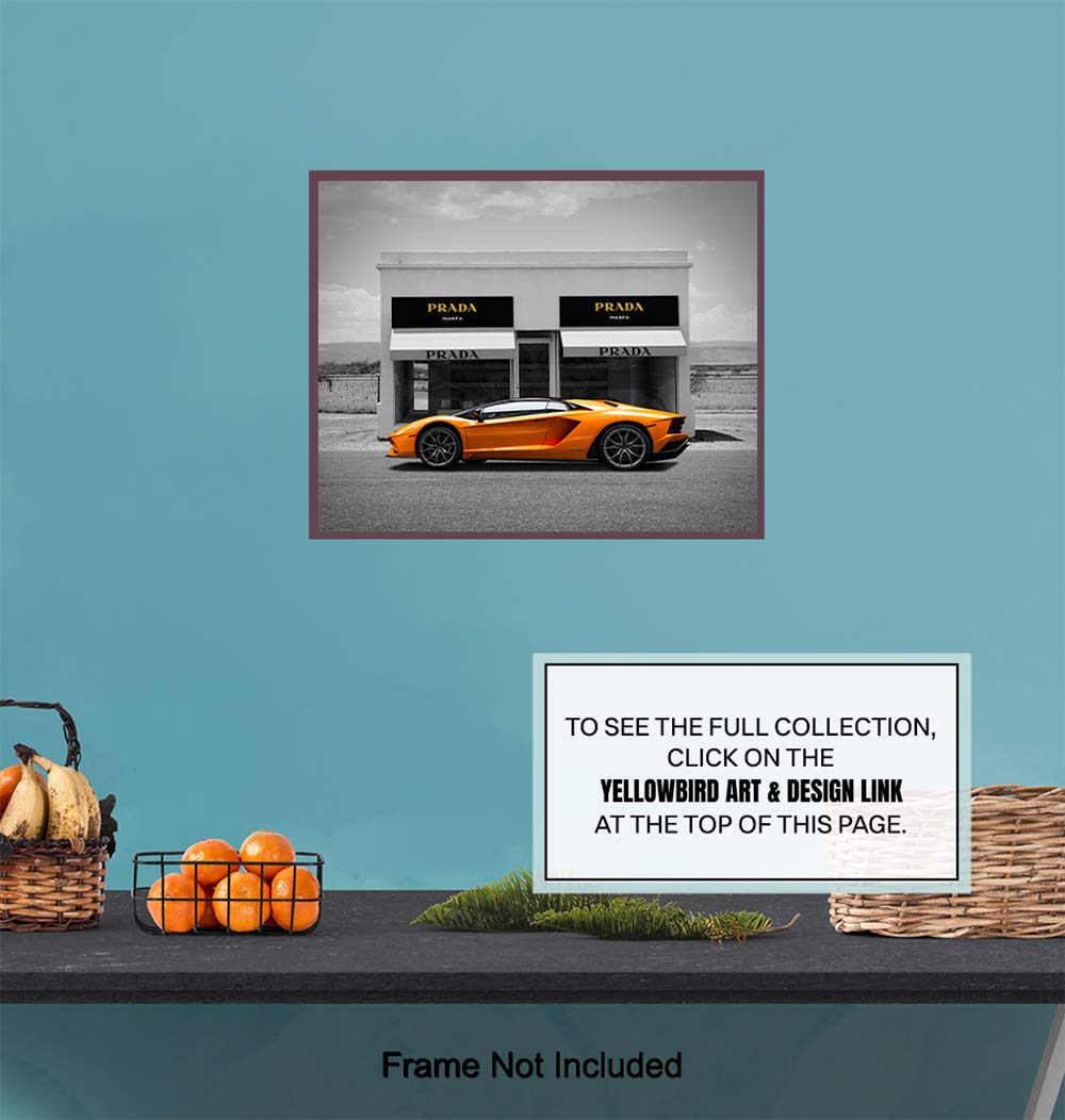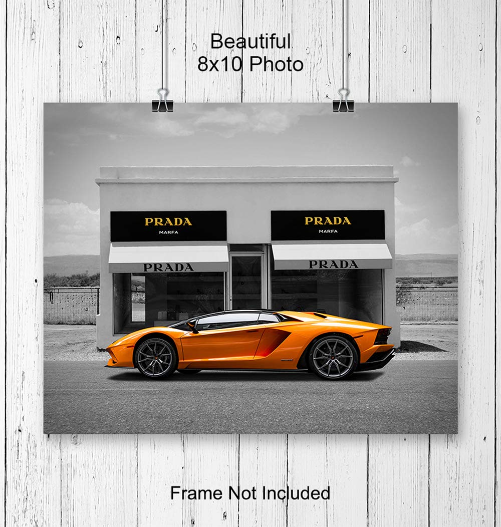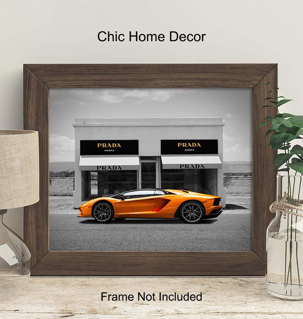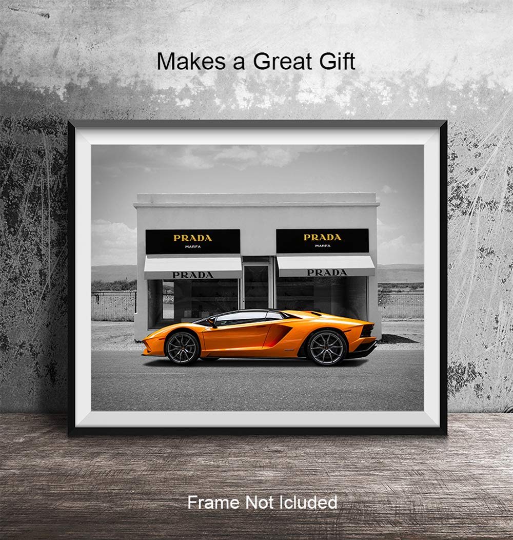 Lambo Lamborghini Car Poster - Photo of Prada - Glam Wall Decor - Motivational Wall Art - Designer Room Decoration for Bedroom Living Room, Apartment - Home Decor or Gift for Women, Men, Teens