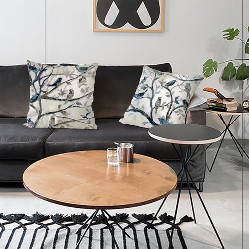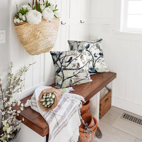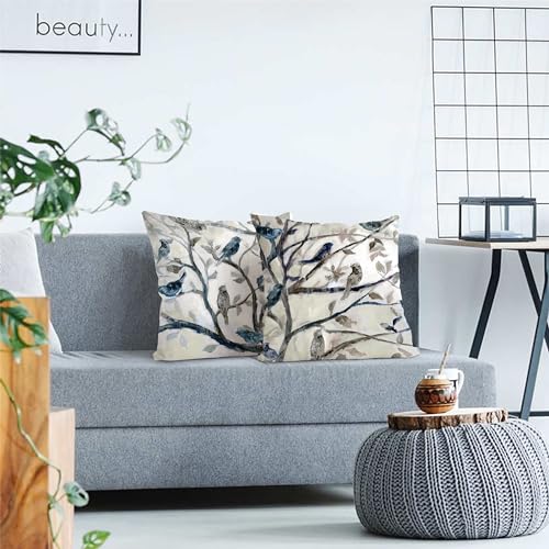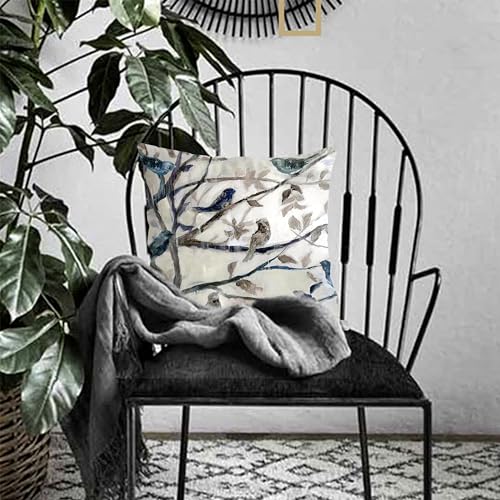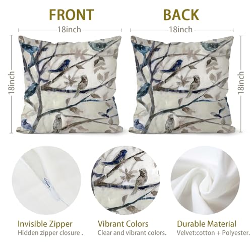 Designer Vintage Birds Pillow Covers 18"X 18"Set of 2,velvet Sage Farmhouse Outdoor Decorative Rectangle Throw Pillow Covers, Pink Floral Throw Pillow Case for Couch Sofa Bed Living Room