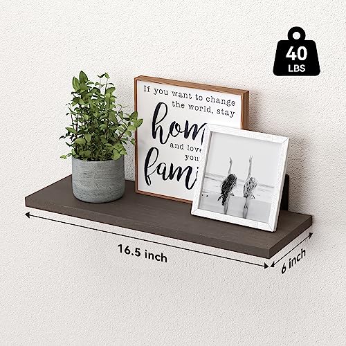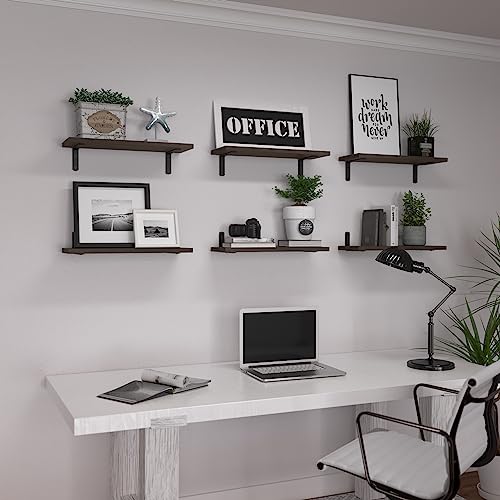 WOPITUES Floating Shelves Set of 6, Wood Rustic Farmhouse Shelves for Wall Decor, Bathroom Shelves, Book Shelves for Living Room-Dark Brown