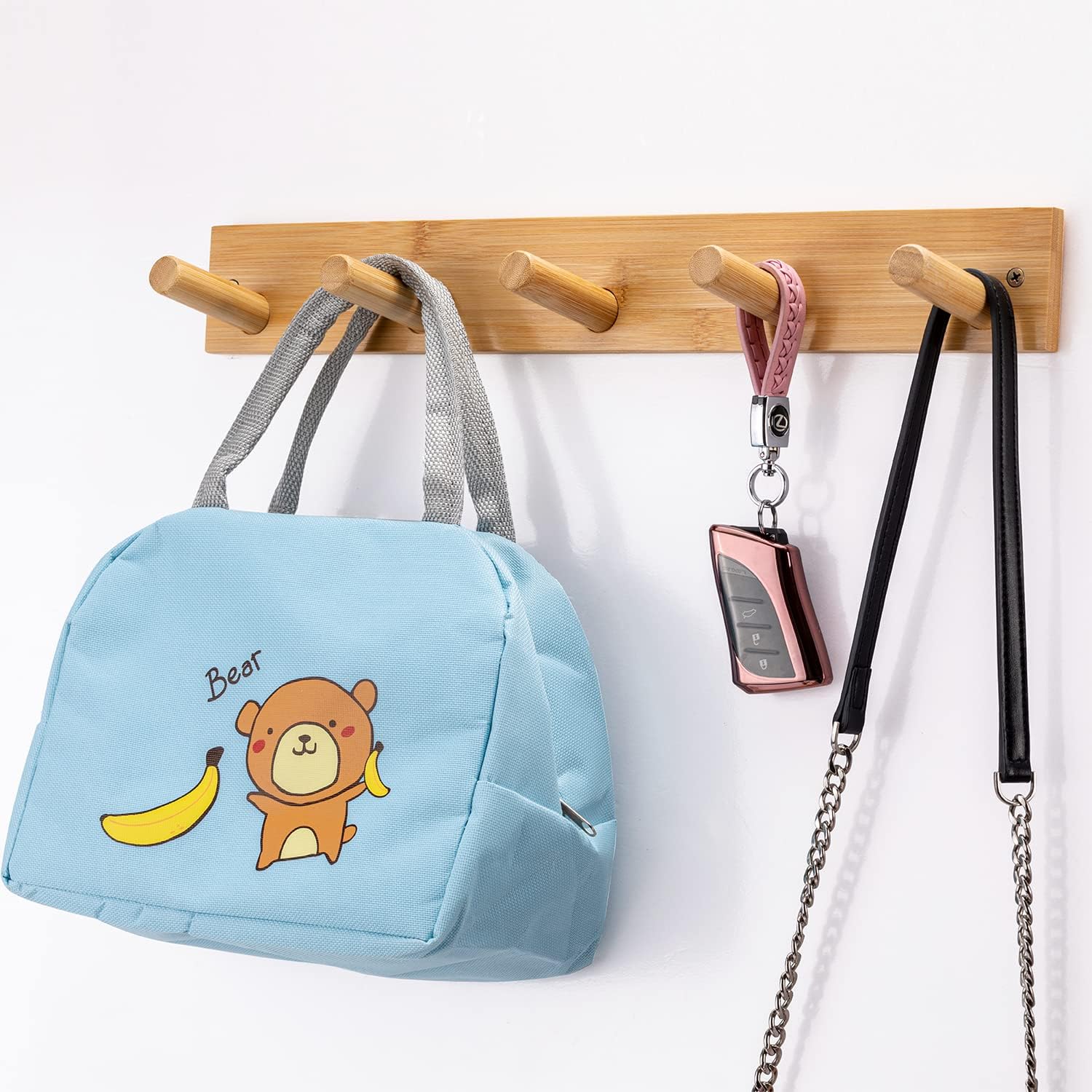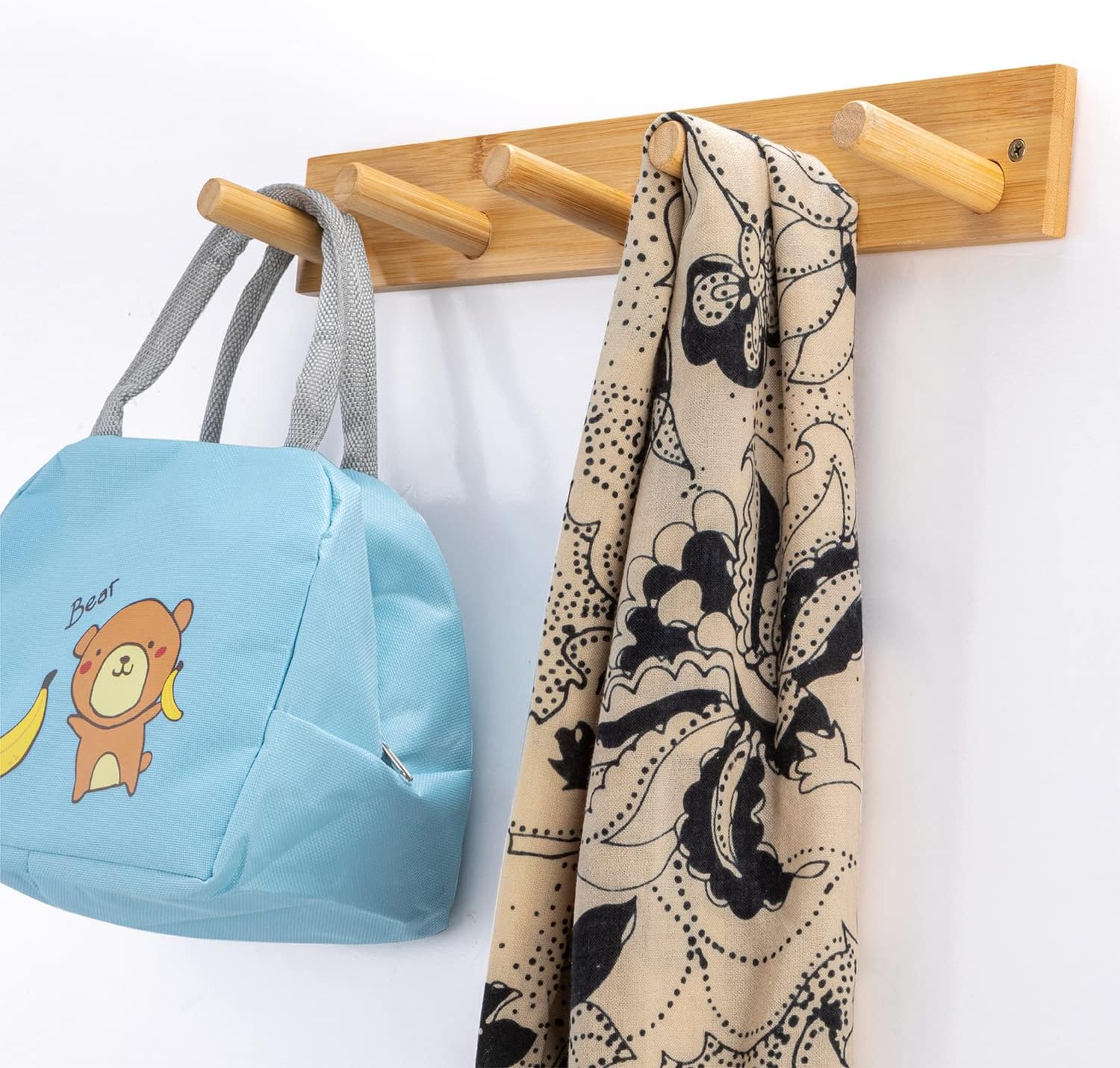 Wall Mounted Coat Rack, 5-Pegs Bamboo Entryway Hat Rack for Wall, Hooks for Hanging Coats and Jackets, Bathroom Kitchen Towel Rack Wall Hangers for Clothes Towel Hats Jackets