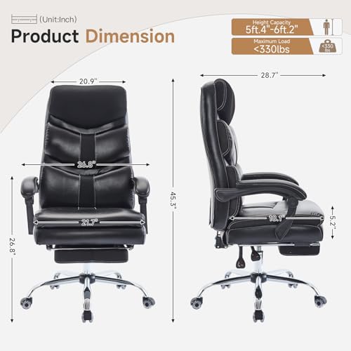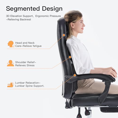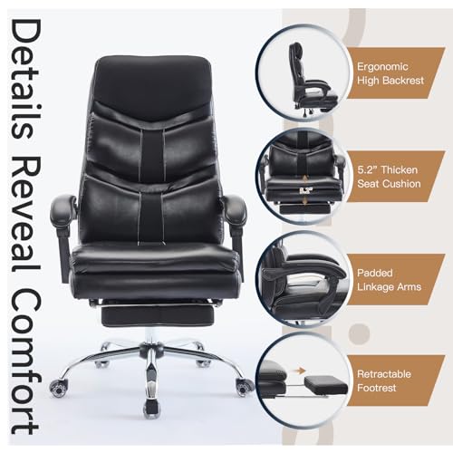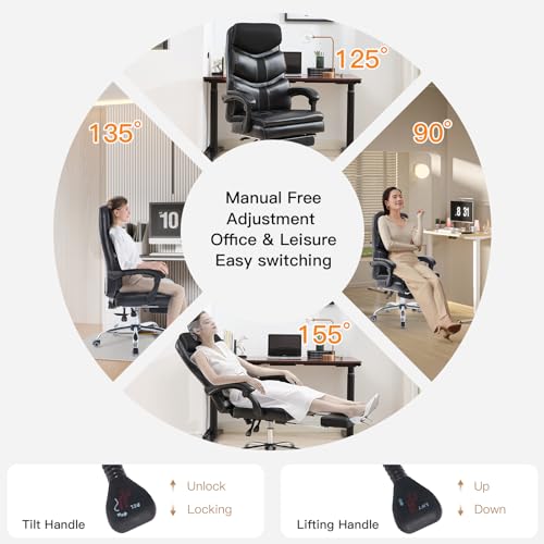 Executive Office Chair with Foot Rest, Ergonomic Big and Tall Computer Desk Chair Back Support, Comfy Reclining High Back Office Chair for Adults, Task Swivel Chairs for Home Office