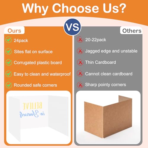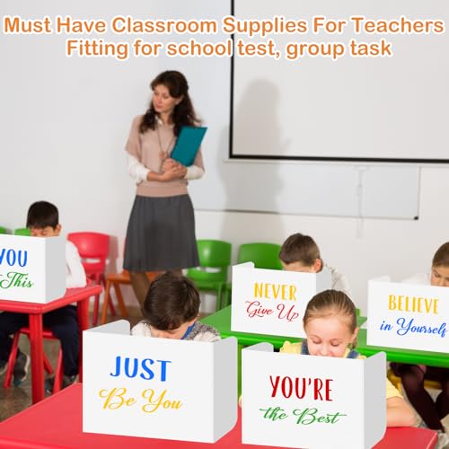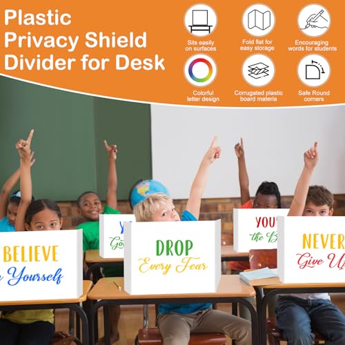 24 Pack Desk Dividers for Students, Waterpoof Test Divider Inspirational Privacy Boards Plastic Privacy Folders Study Carrel Privacy Shields Boards for Student Desks(White)