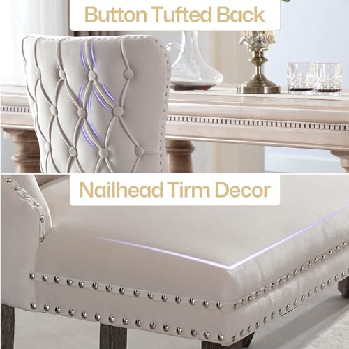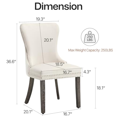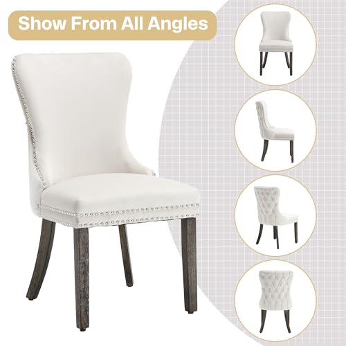 Velvet Dining Chairs Set of 4, Nikki Collection Upholstered Side Chair with Nailhead Trim, Button Tufted Wingback Dining Chairs with Solid Wood Legs, Dark Gray