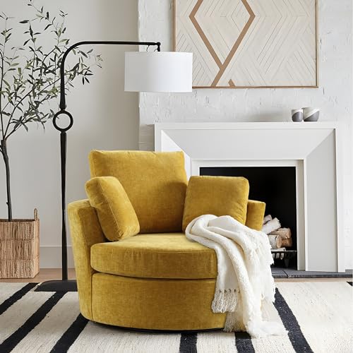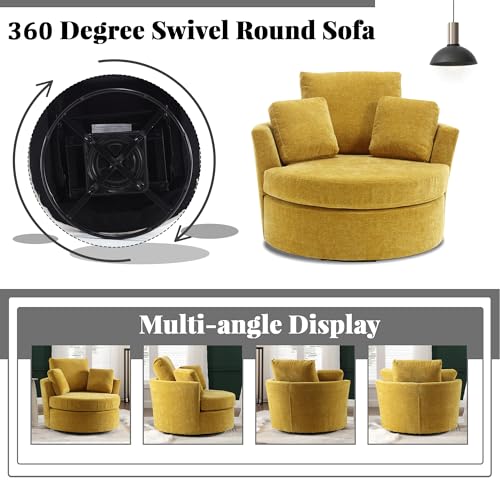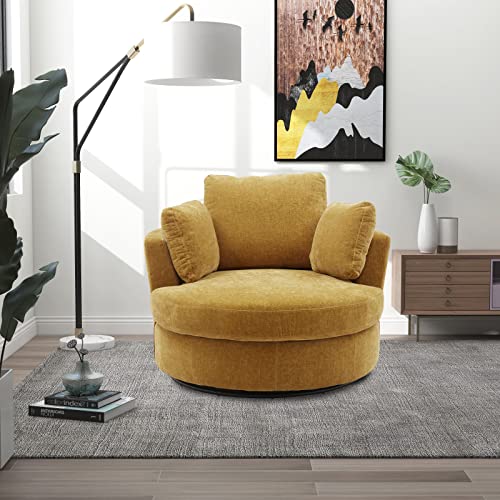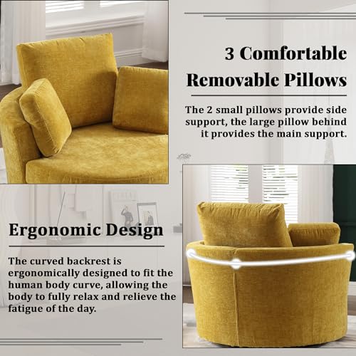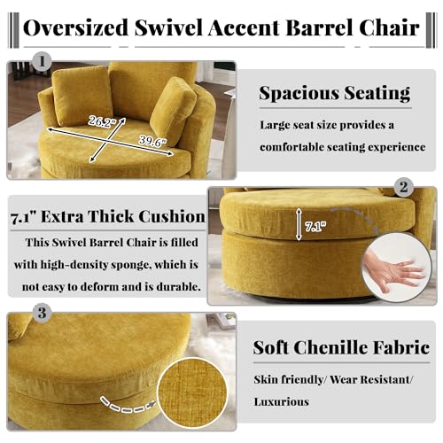 Oversized Swivel Accent Barrel Chair, 42.2" W Modern Upholstered Single Sofa Chair with 3 Pillows, 360 Degree Swivel Chenille Round Lounge Armchair, Cozy Club Chair for Living Room Office Hotel, Beige