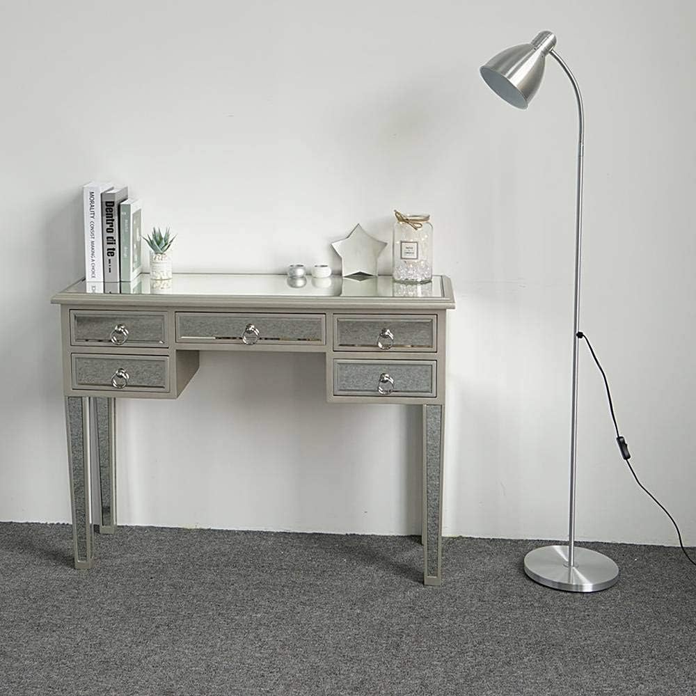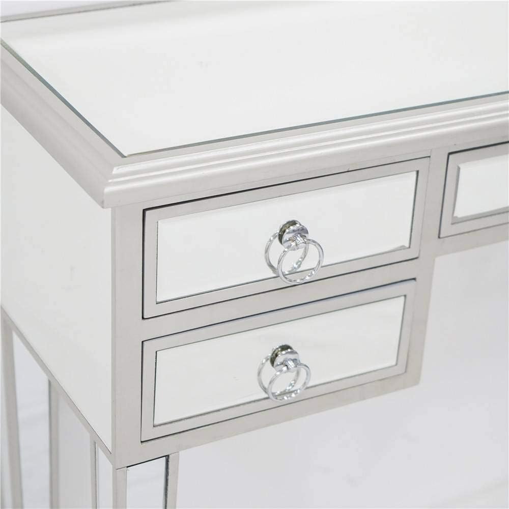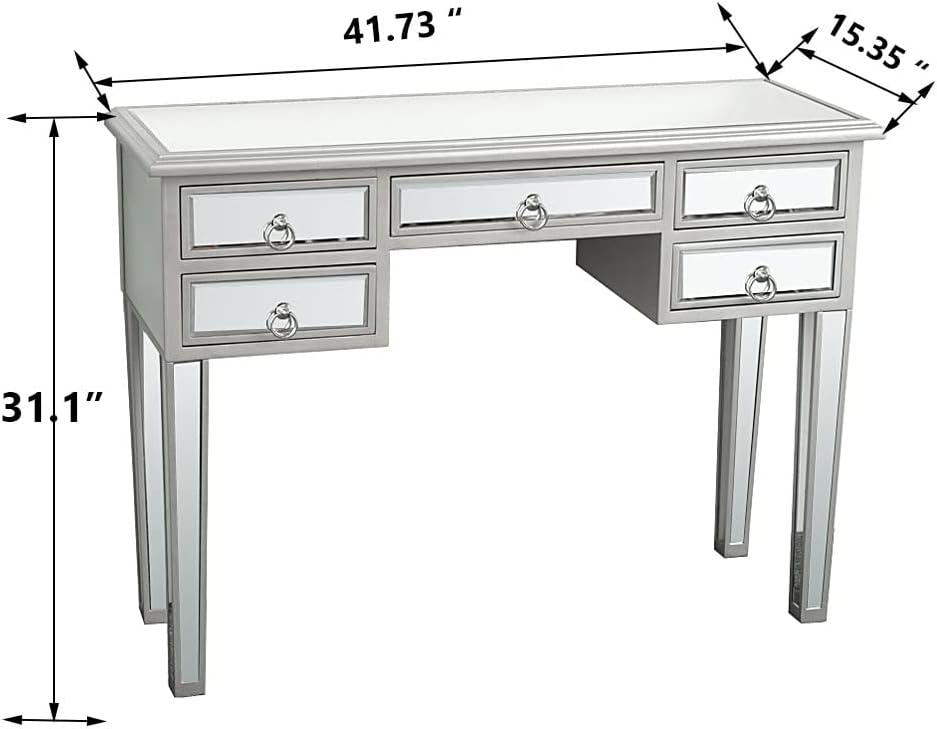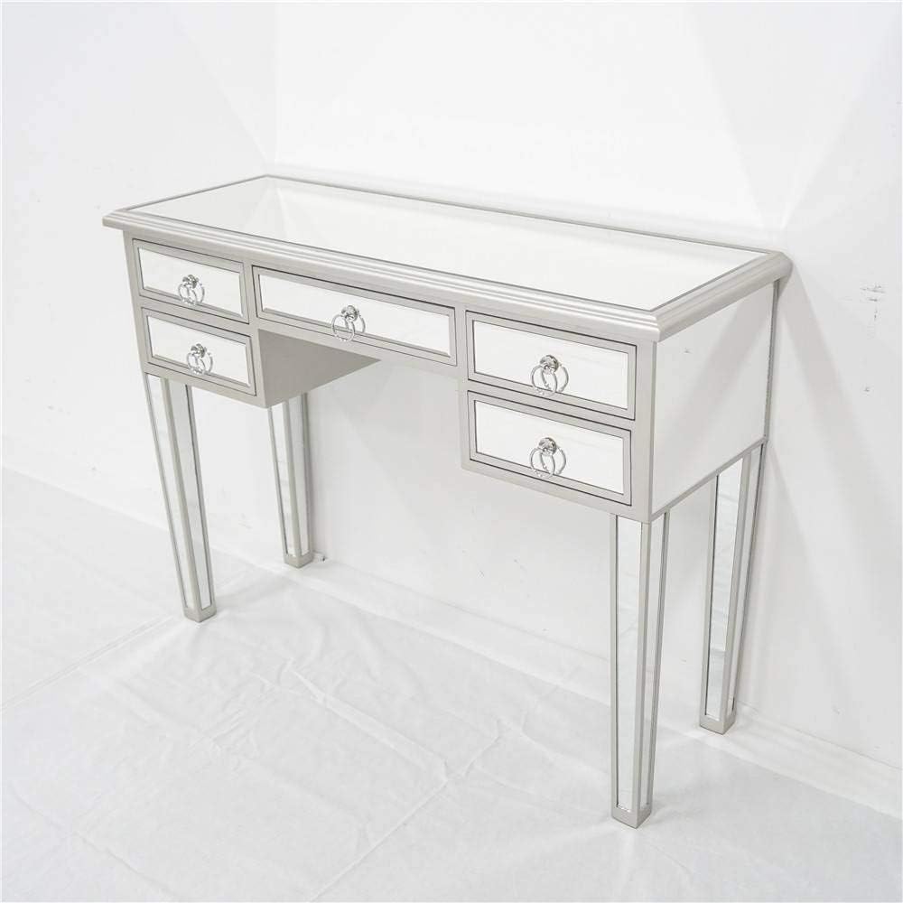 Mirror Table,Mirrored Makeup Vanity Table Desk, 5 Drawer Media Console Table for Women Home Office Writing Desk Modern Media Console Table