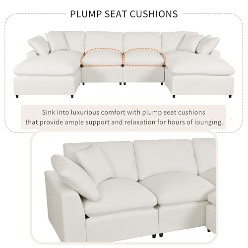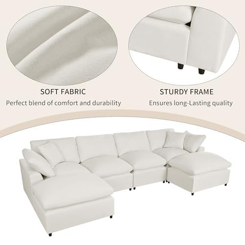134.4 X 59.1'' U Shape Modular Sectional Sofa, Oversized Polyester Fabirc L Shaped Couch, Modern 6 Seat Corner Sofa Couch with 2 Removable Ottomans for Living Room, Office
