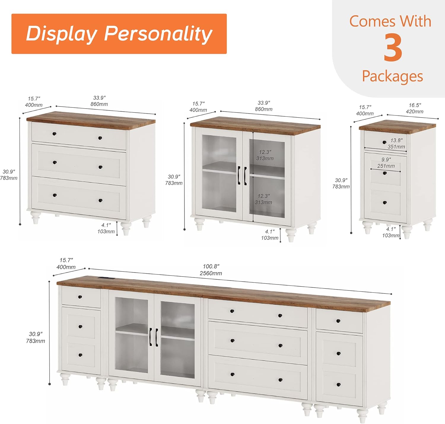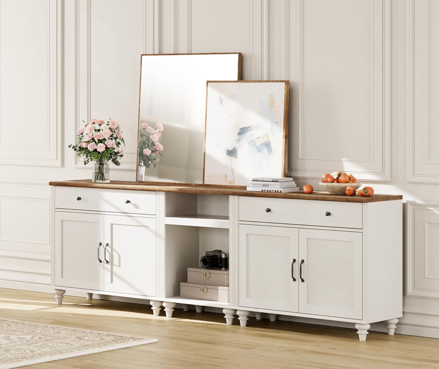 WAMPAT Modern TV Stand for 110 Inch TV, Media Console with 5 Drawers and 4 Storages, Mid Century TV Console Table for 100 90 85 inch TV,Wood Entertainment Center for Bedroom and Living Room, White