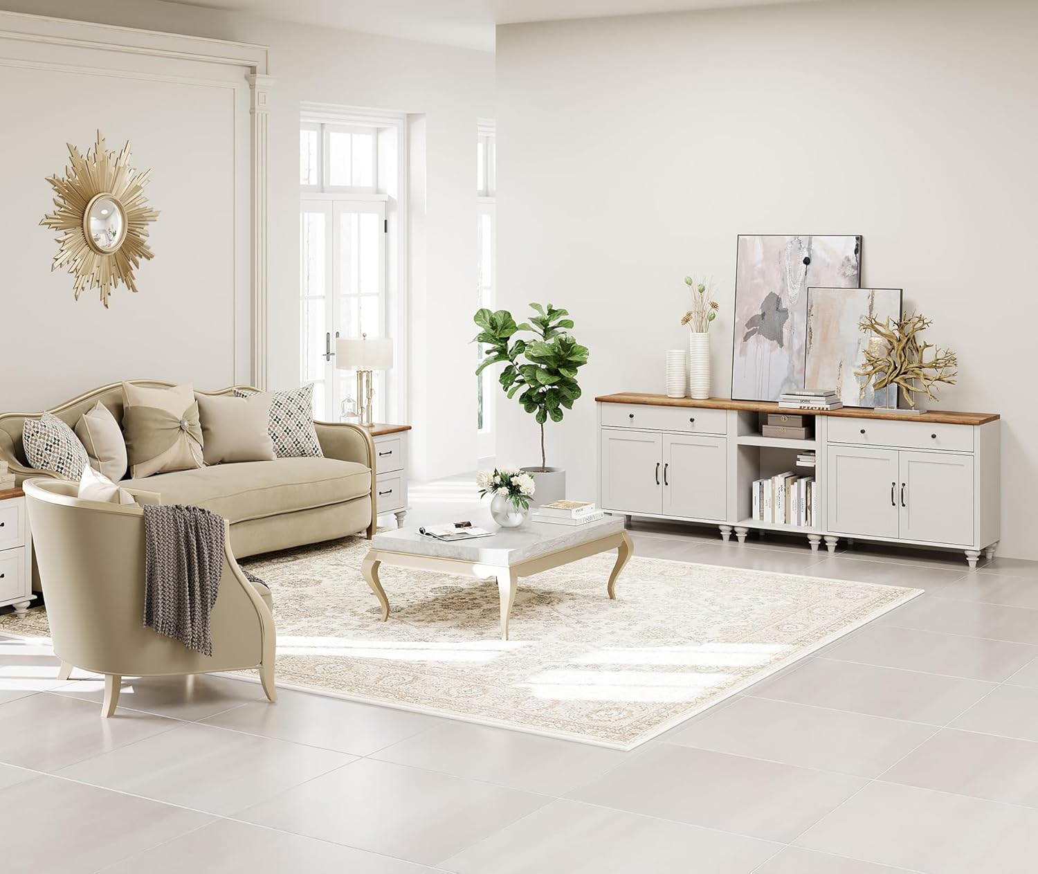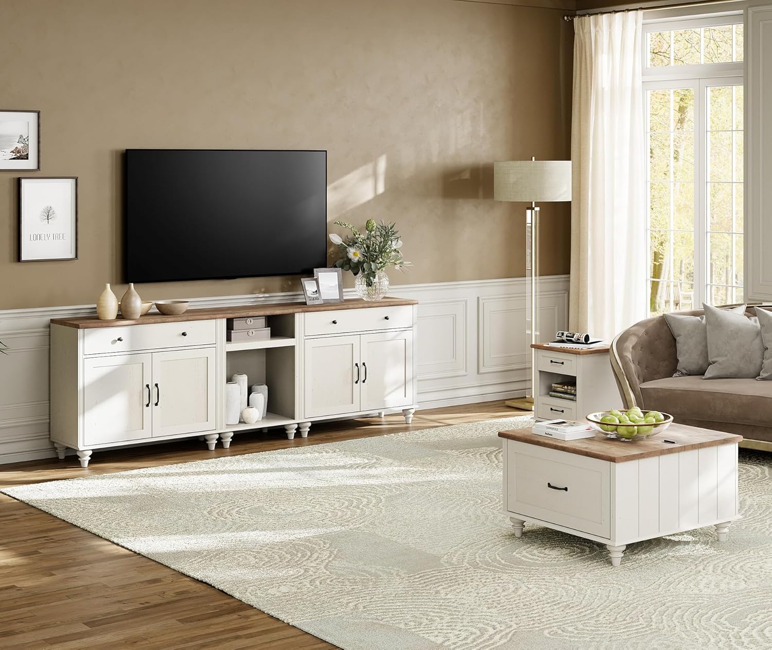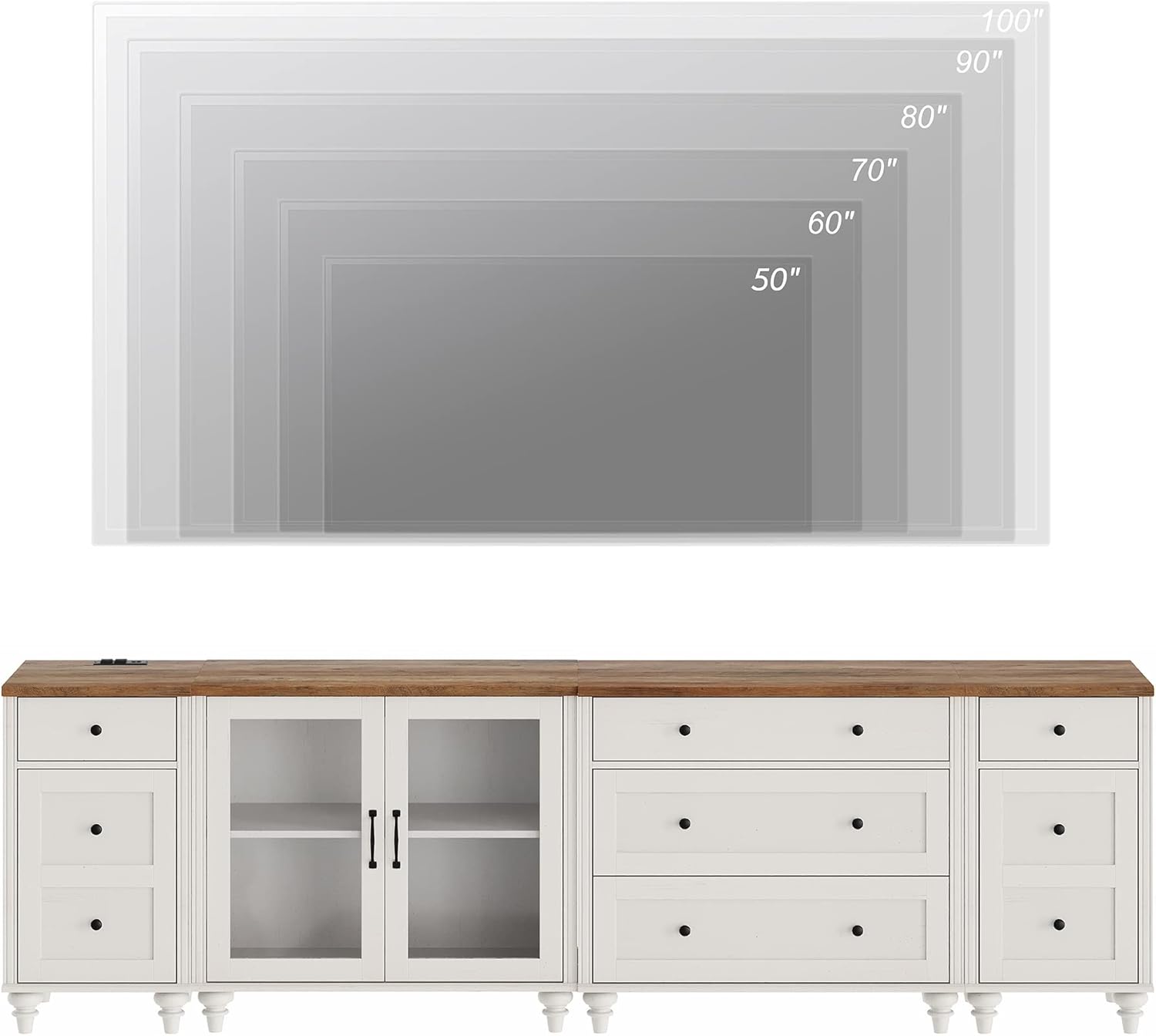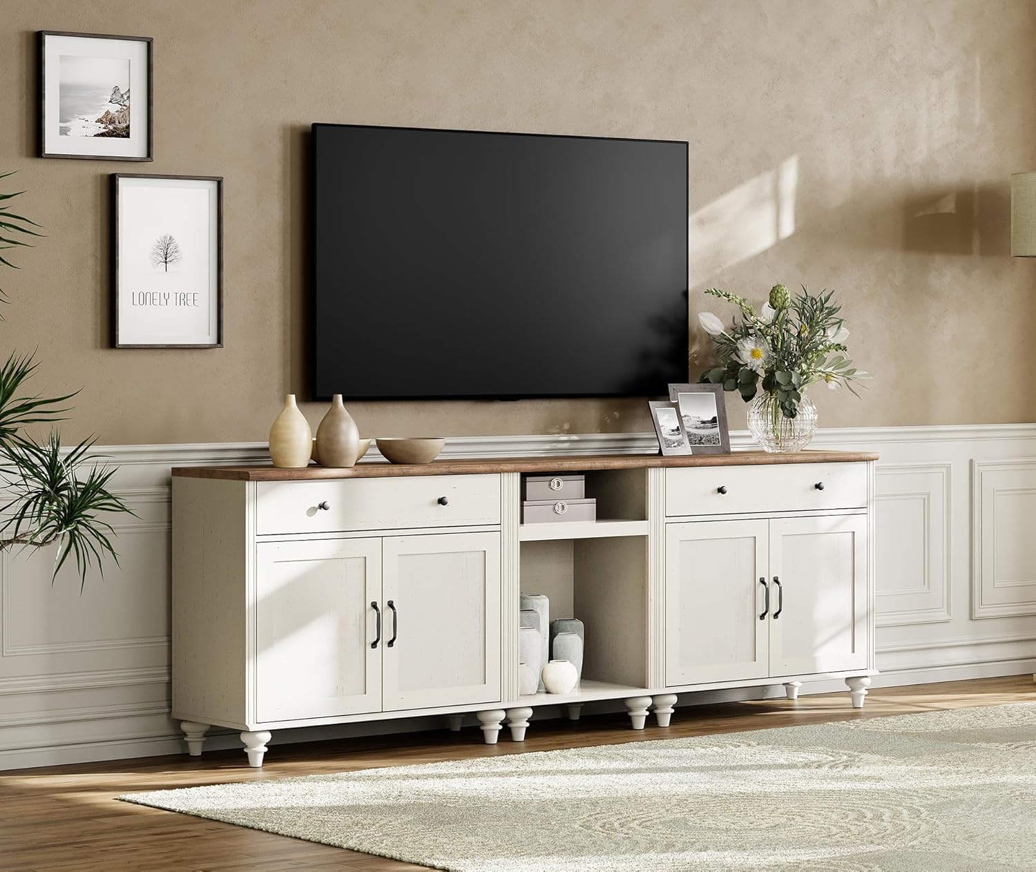 WAMPAT Farmhouse TV Stand for TVs up to 100'', Home Entertainment Center with 8 Storages for 85/90/95 inch TV, Large TV Console Table for Living Room, Bedroom, White