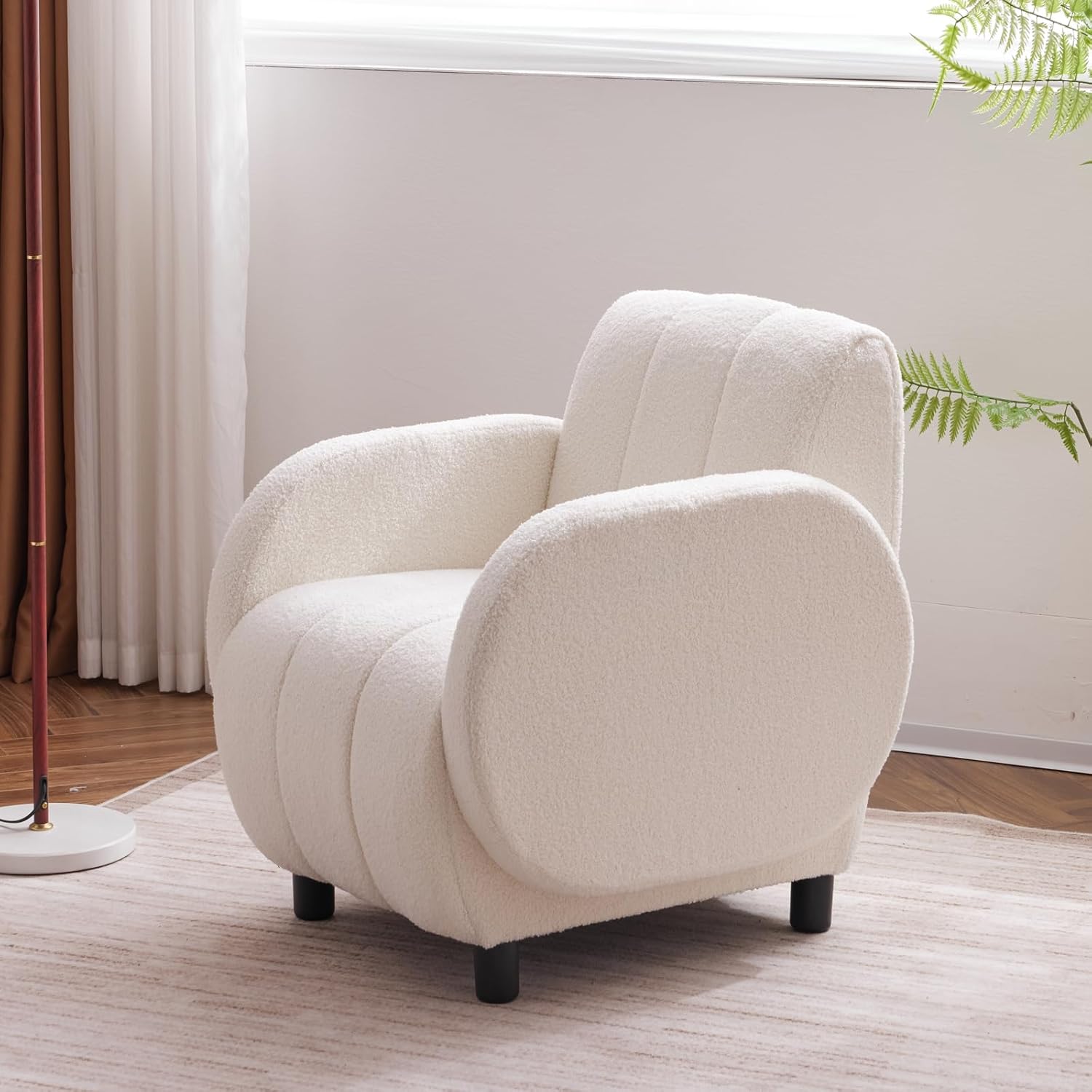 roomfitters Modern Fabric Upholstered Armchair | Teddy Velvet Reading Chair, Single Sofa for Living Room, Bedroom, Office Lounge Club Chair