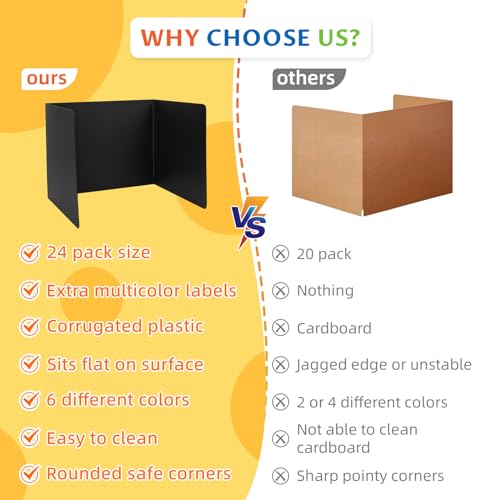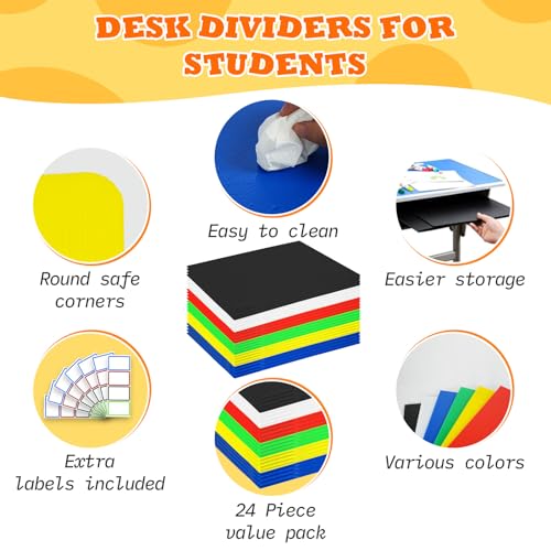 24 PCS Desk Dividers for Students Privacy Folder Shield Boards 6 Colors Durable & Waterproof Plastic Testing Dividers for Classroom Easy-to-Clean Folders Teacher Supplies