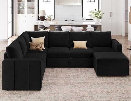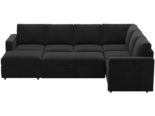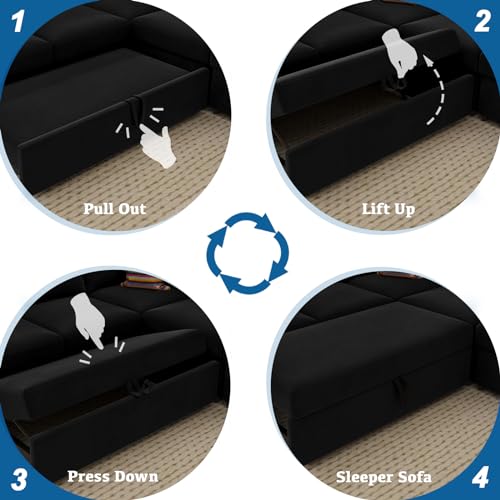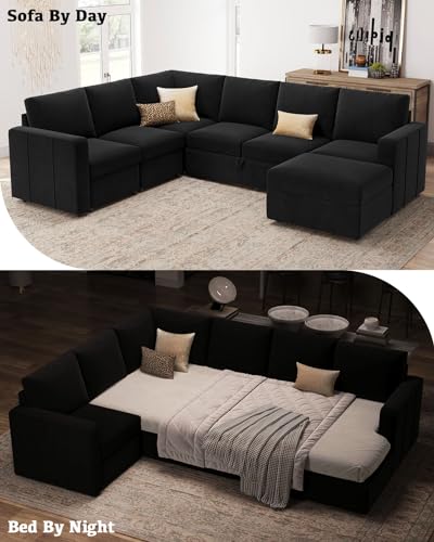 Belffin Oversized Sectional Sleeper Sofa with Pull Out Bed Convertible Velvet U Shaped Modular Sectional Couch Bed Black