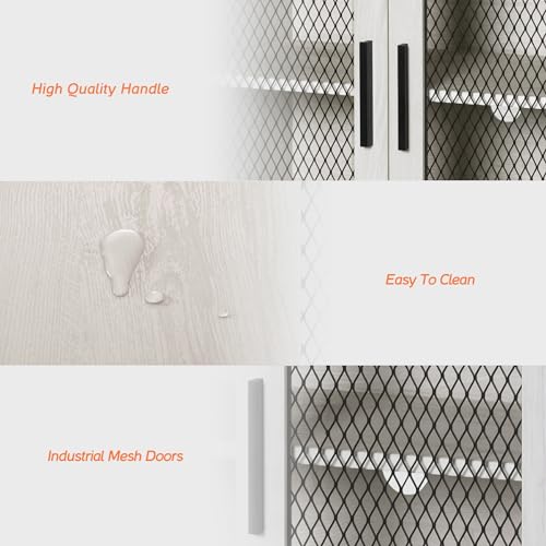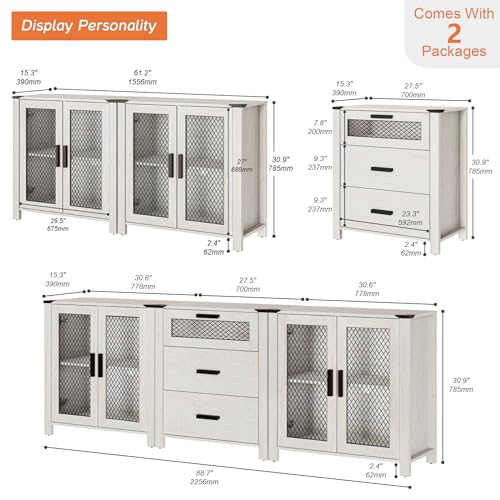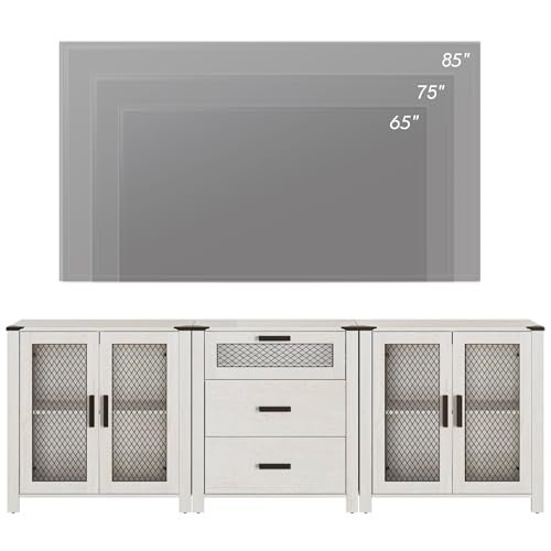 WAMPAT TV Stand Set with Drawers for ups to 85 inch TV,Storage Cabinets with Adjustable Shelf, Media TV Console Table with 4 Mesh Door for Dining, Living and Bed Room,Antique White