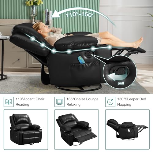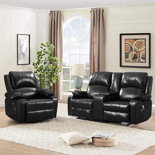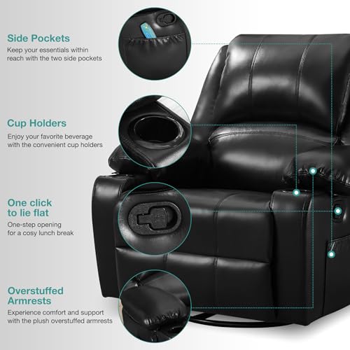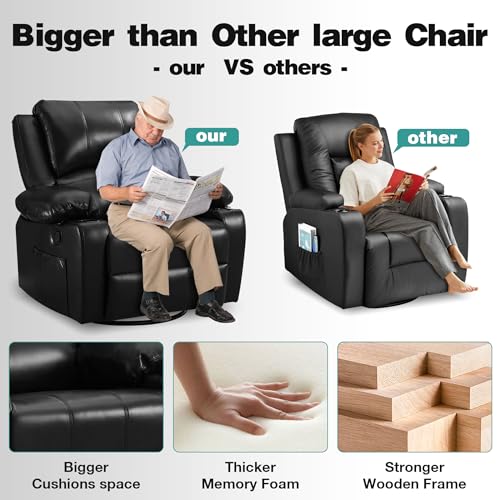 Massage Recliner Chair for Adults Home Theater Seating Seats with 8Point Massage and Heat, Oversized Faux Leather Recliner Chair for Living Room Double Recliner with Storage,Cup holder