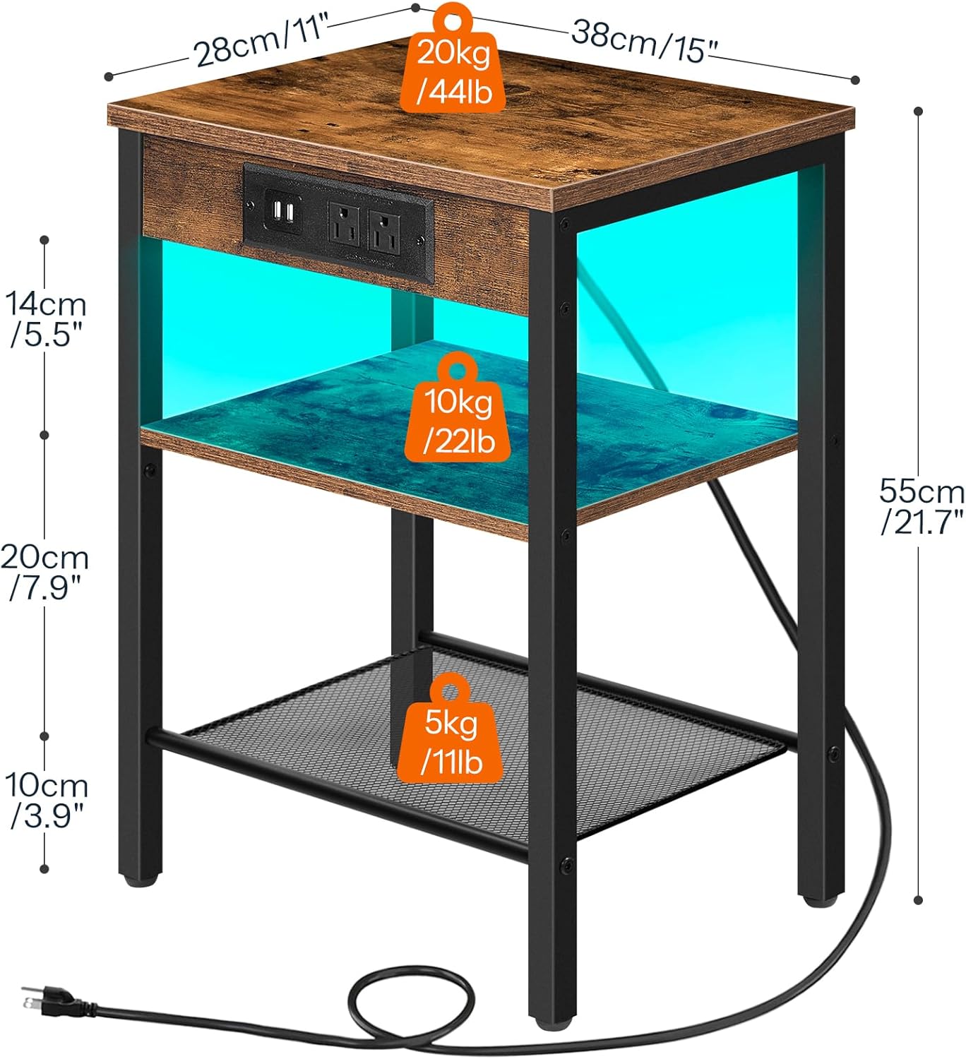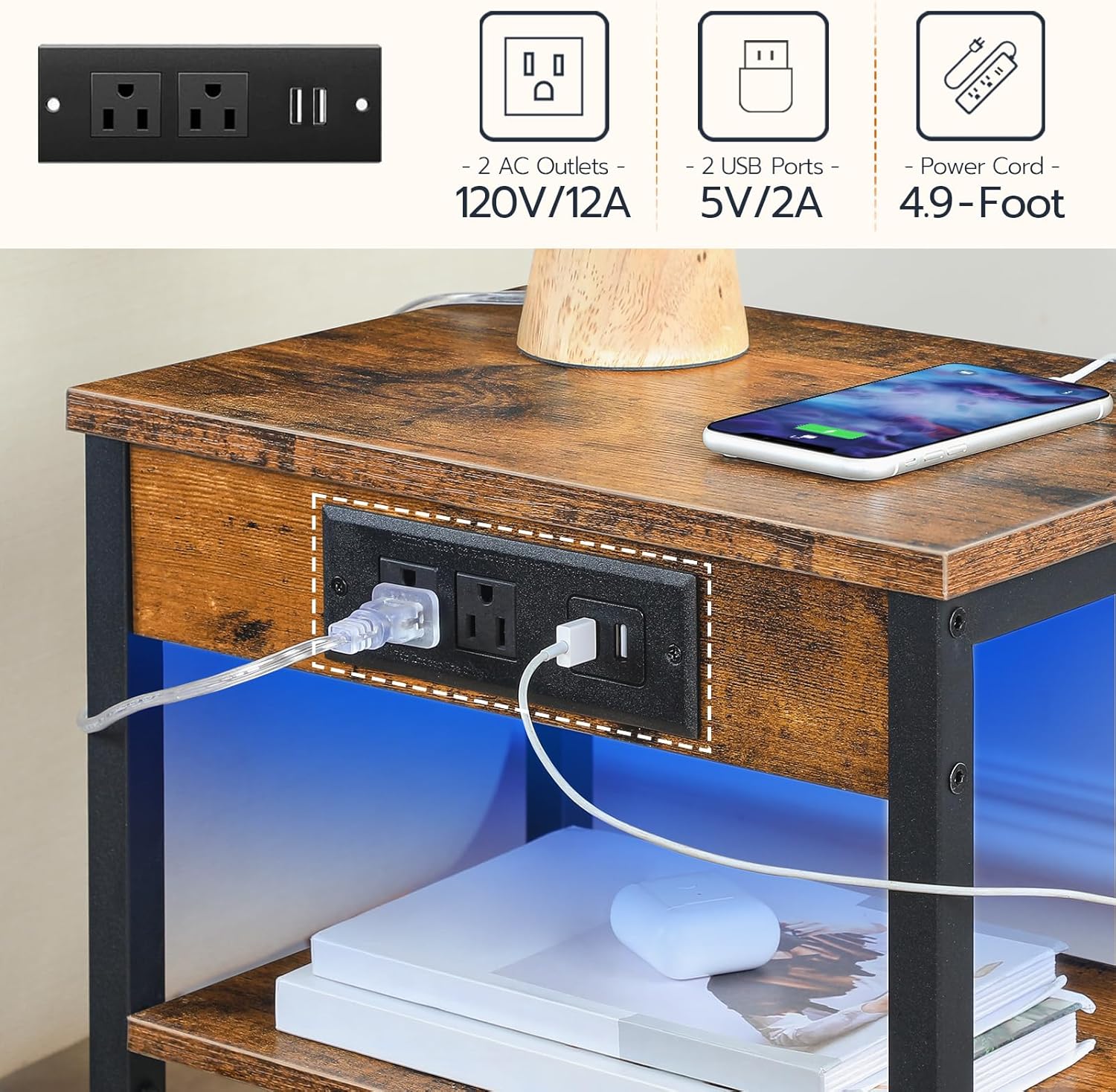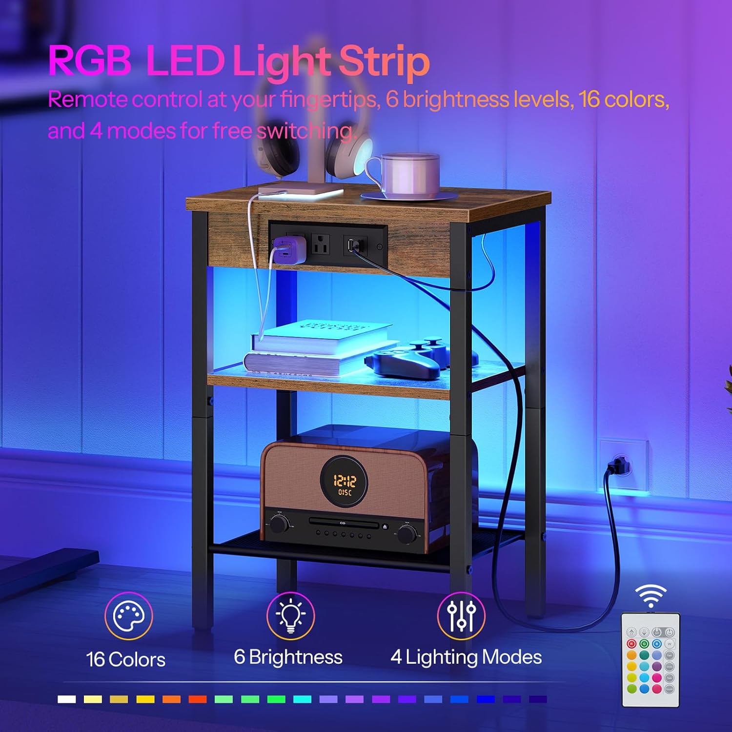 HOOBRO LED TV Stand and LED End Tables Bundle, Gaming Entertainment Center with Charging Station, Side Tables Set of 2 with Charging Station and LED Lights, BF21UDDS01-BF112UDBZP201